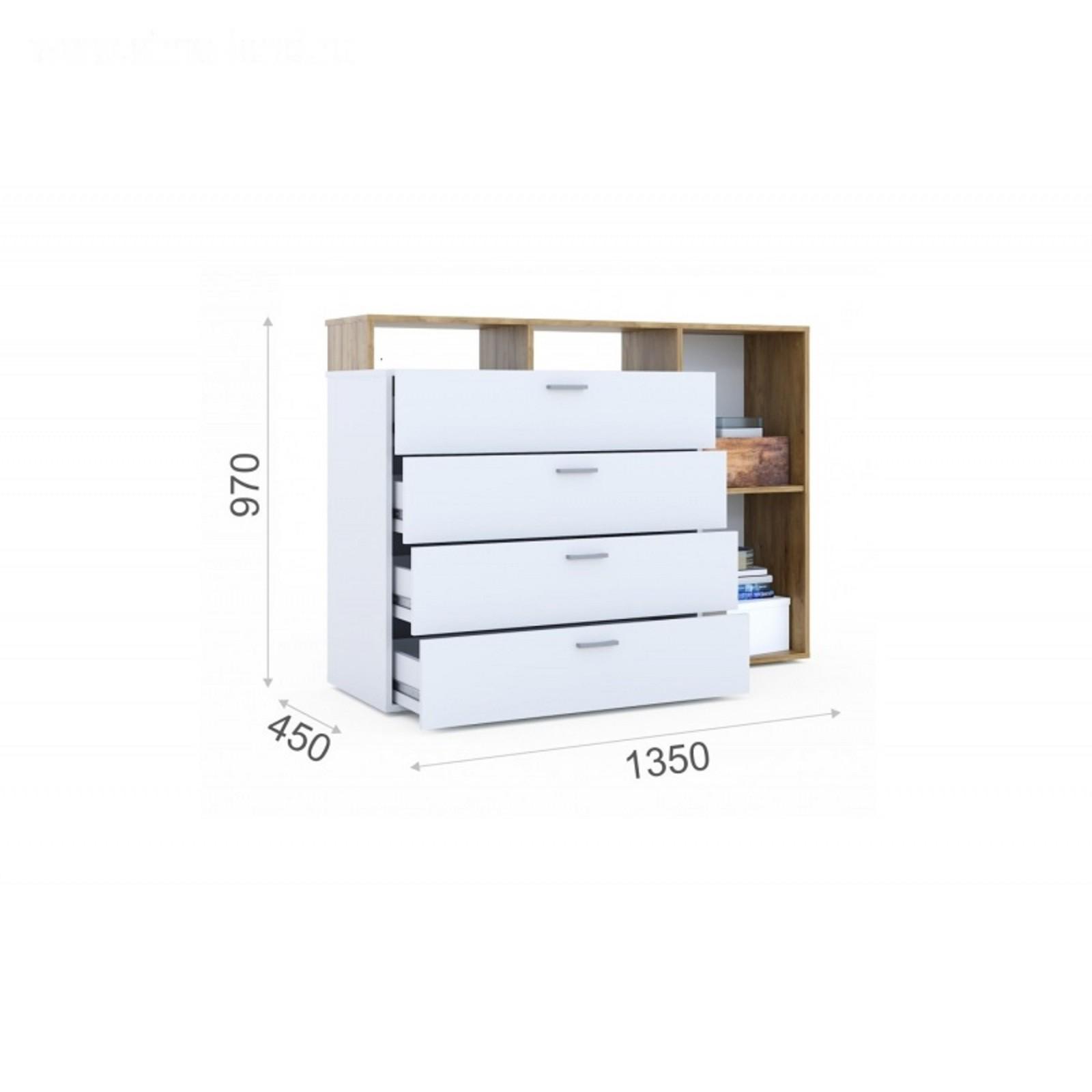 Комод «Невио 1», 1 дверь и 4 ящика, 1350 × 450 × 970 мм, цвет дуб крафт золотой / белый