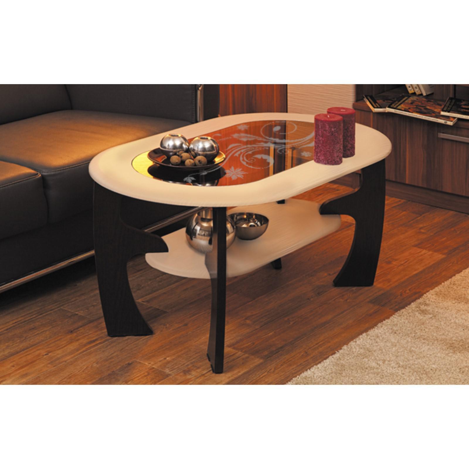 Стол журнальный «Маджеста 2» со стеклом и рисунком №2, цвет венге / клён азия