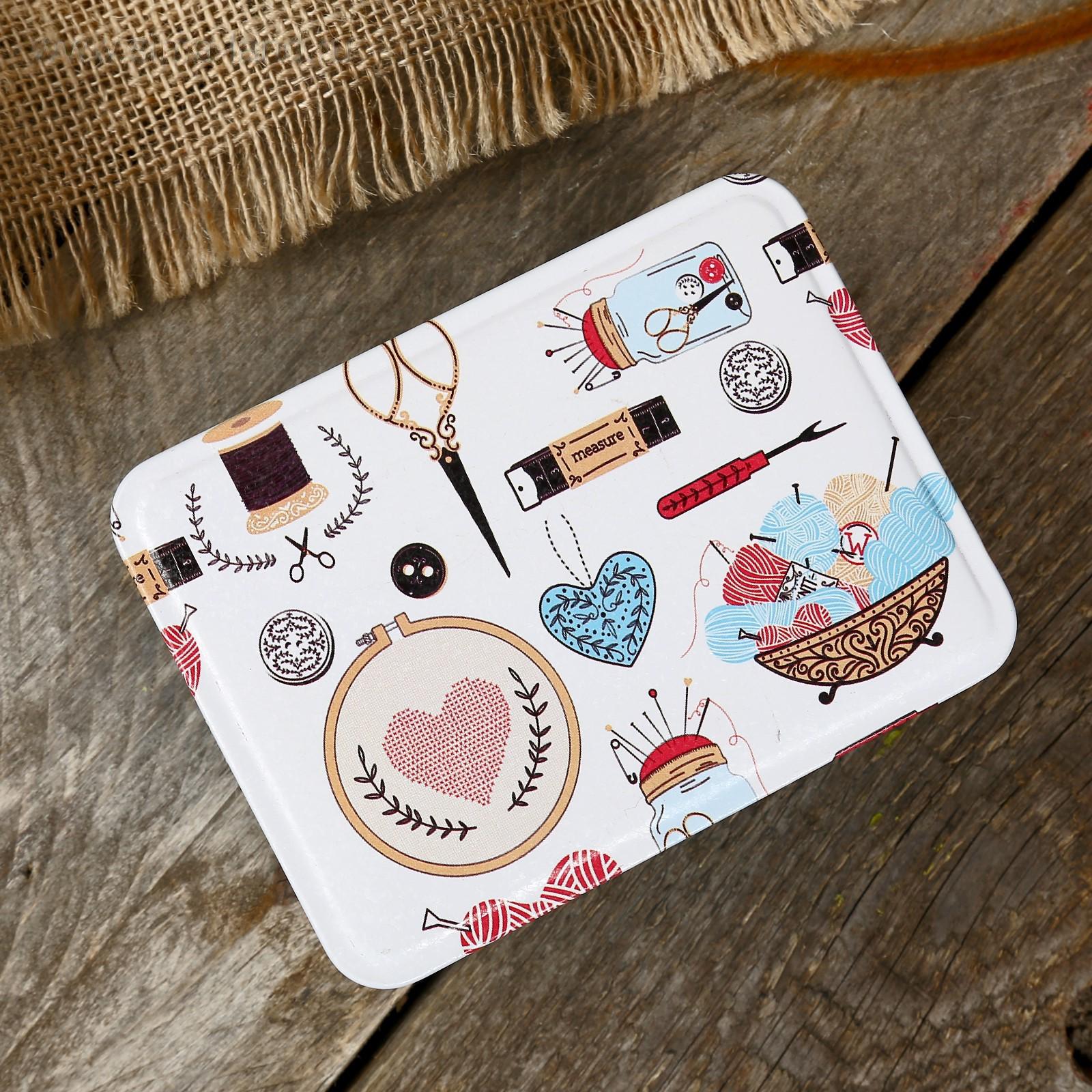 Шкатулка металл прямоугольная "Мастерская швеи" матовая 6,3х9х12 см