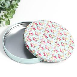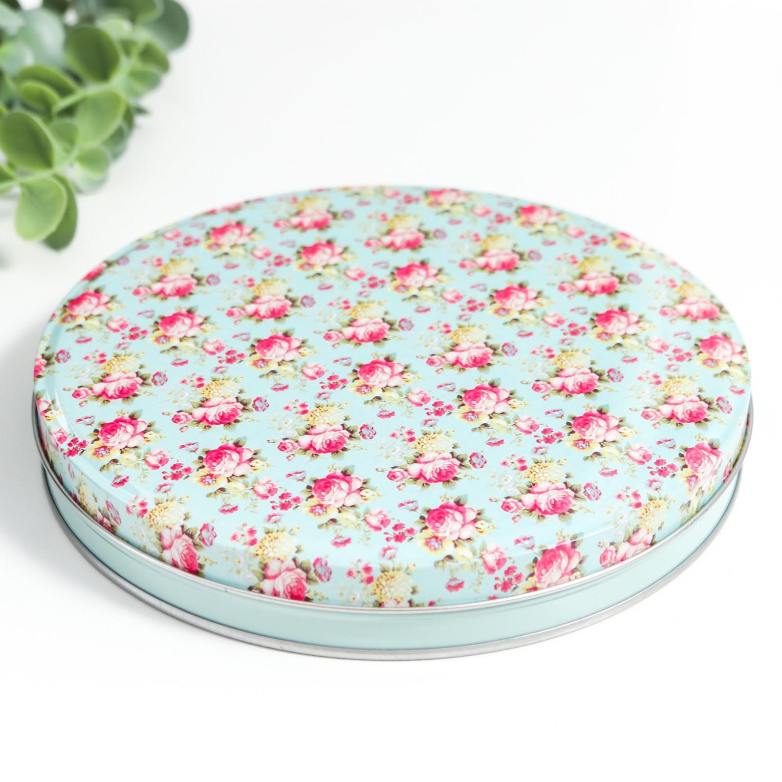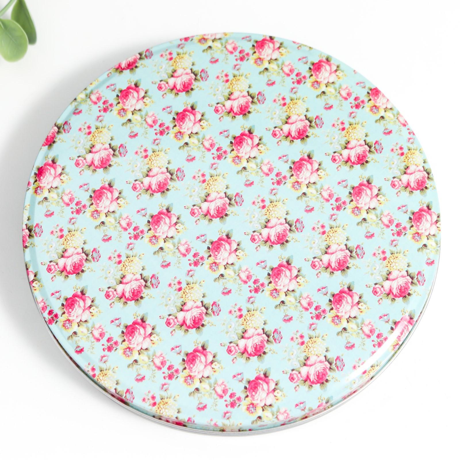 Шкатулка металл круглая "Розовые розы на зелёном" 2,5х17х17 см