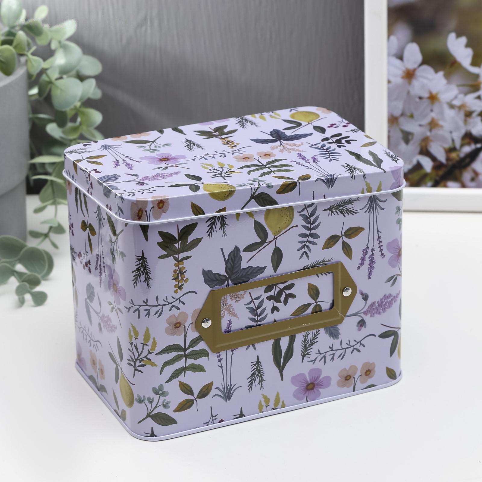 Шкатулка металл прямоугольная "Цветы и разнотравье" 12,7х10,8х15,8 см