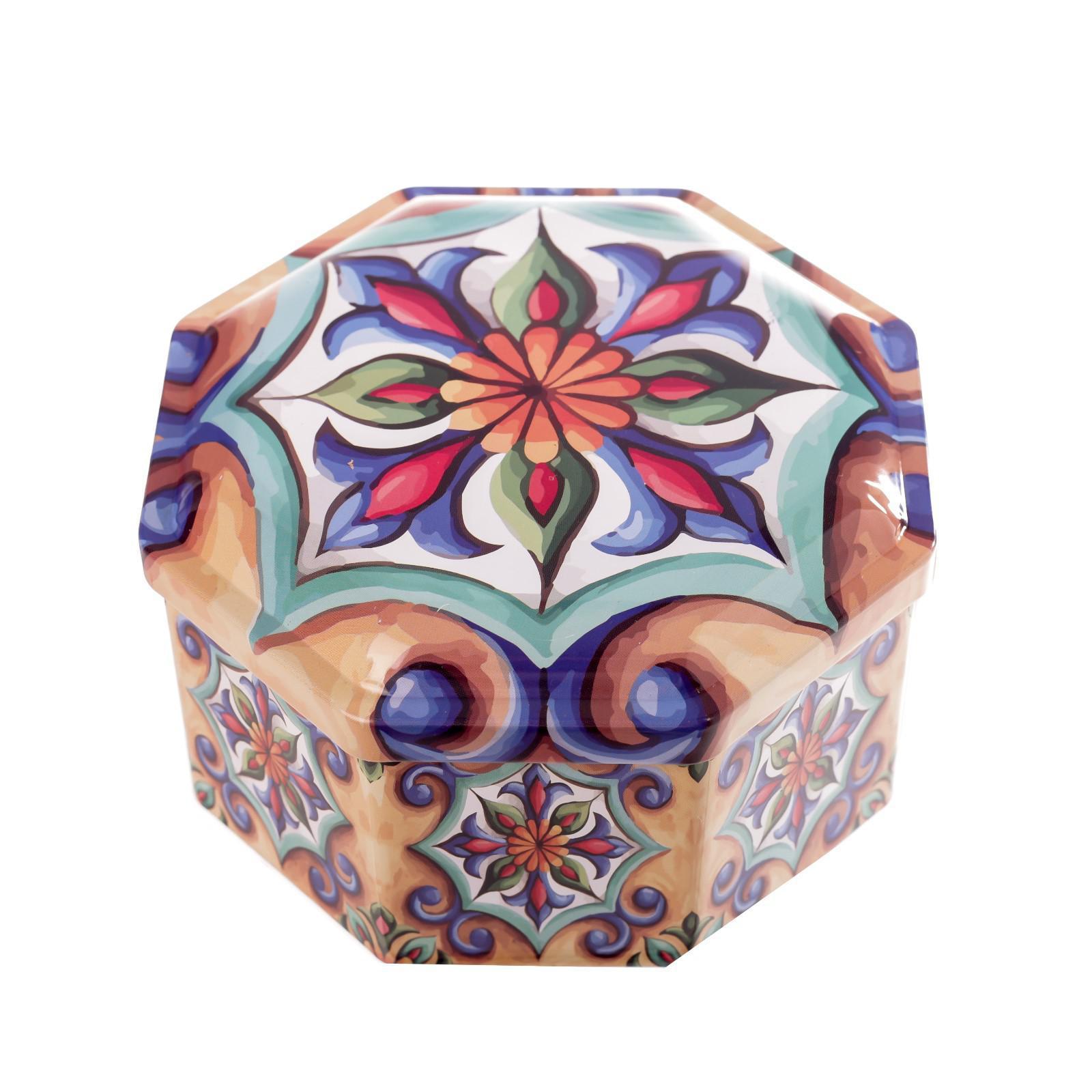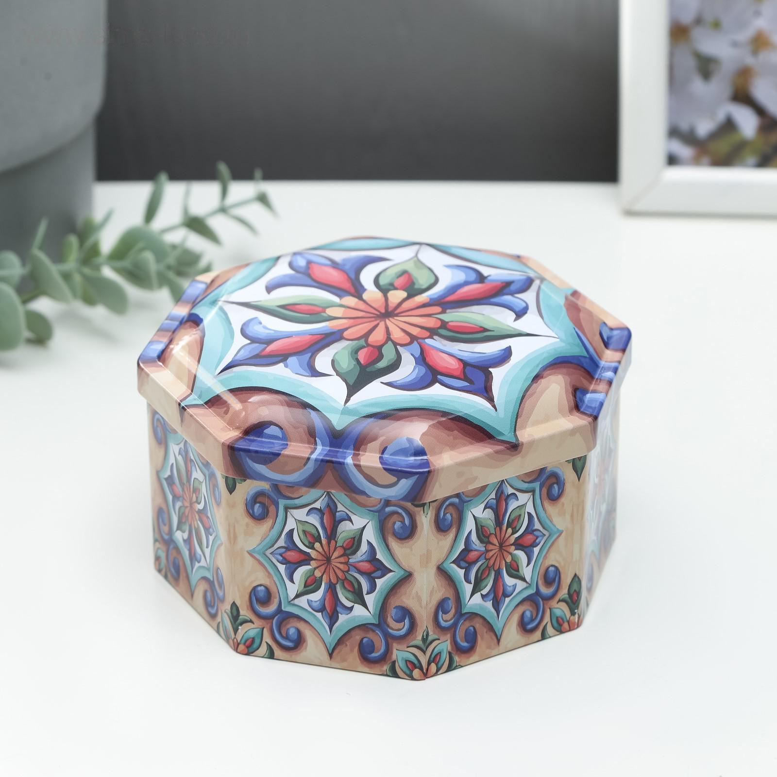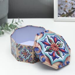 Шкатулка металл многогранник "Восточные узоры на бежевом" 6,5х11,5х11,5 см