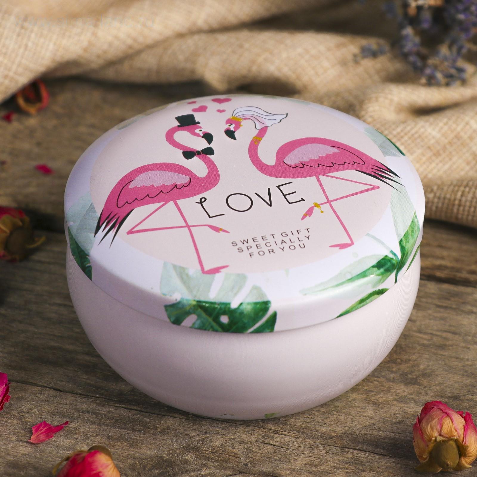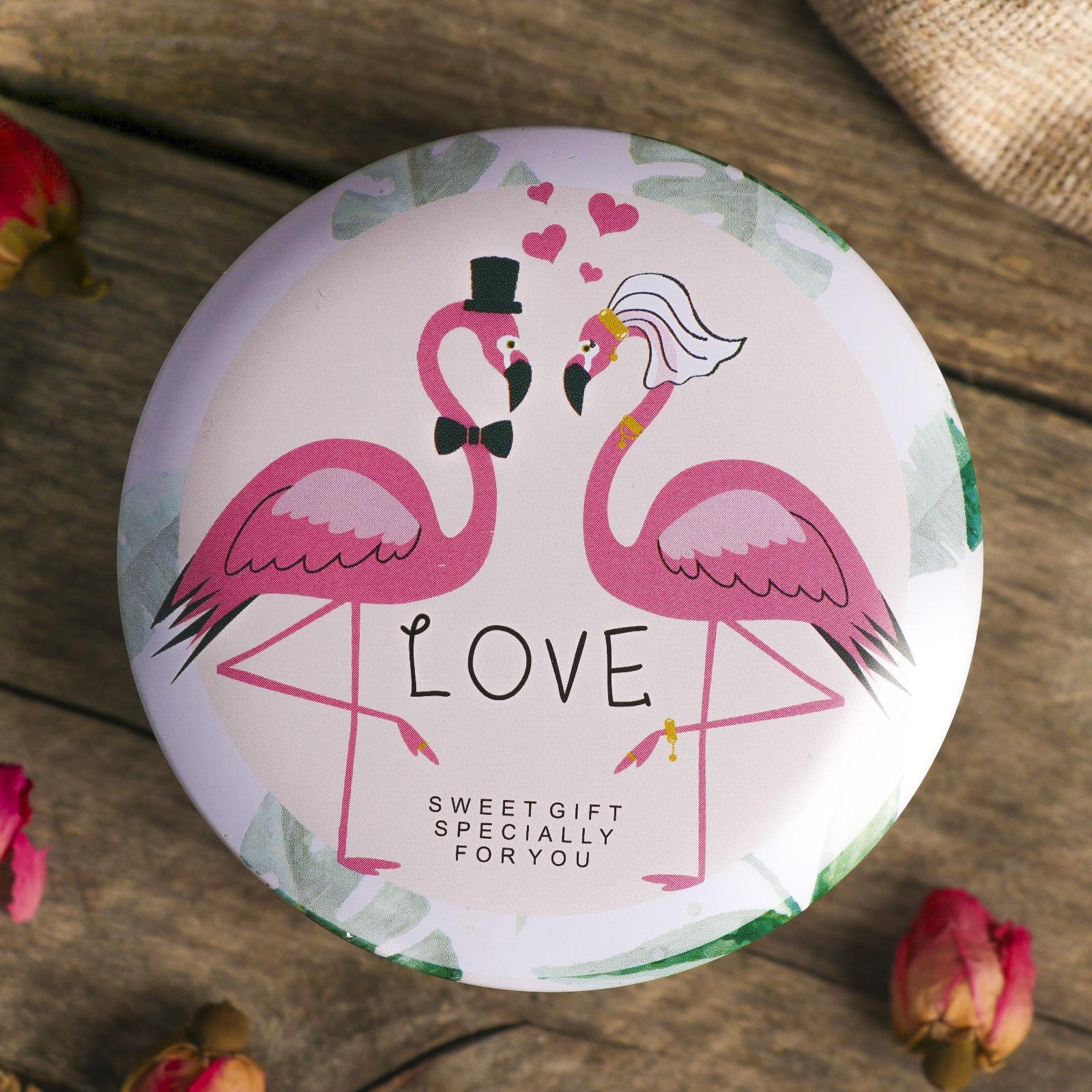 Шкатулка металл круглая "Свадьба. Фламинго" 4х8х8 см