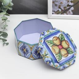 Шкатулка металл многогранник "Цветы на голубом - Восток" 6,5х11,5х11,5 см