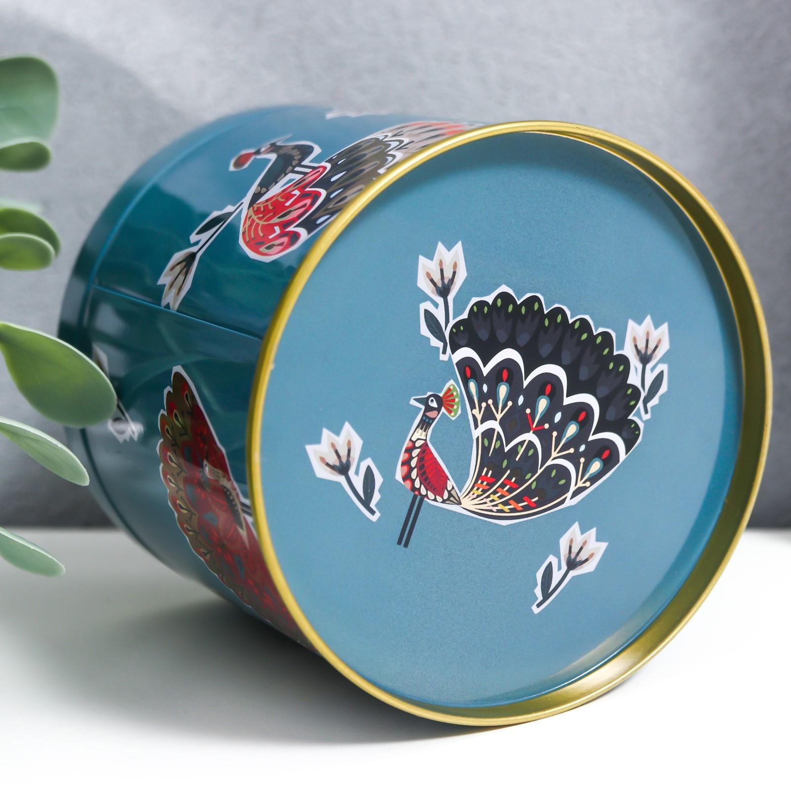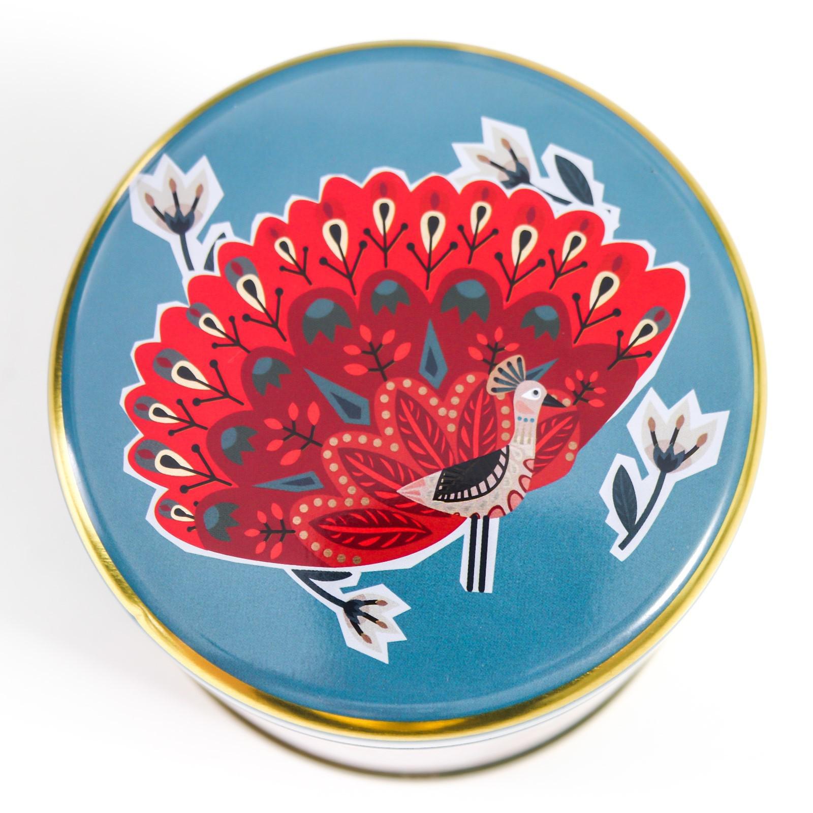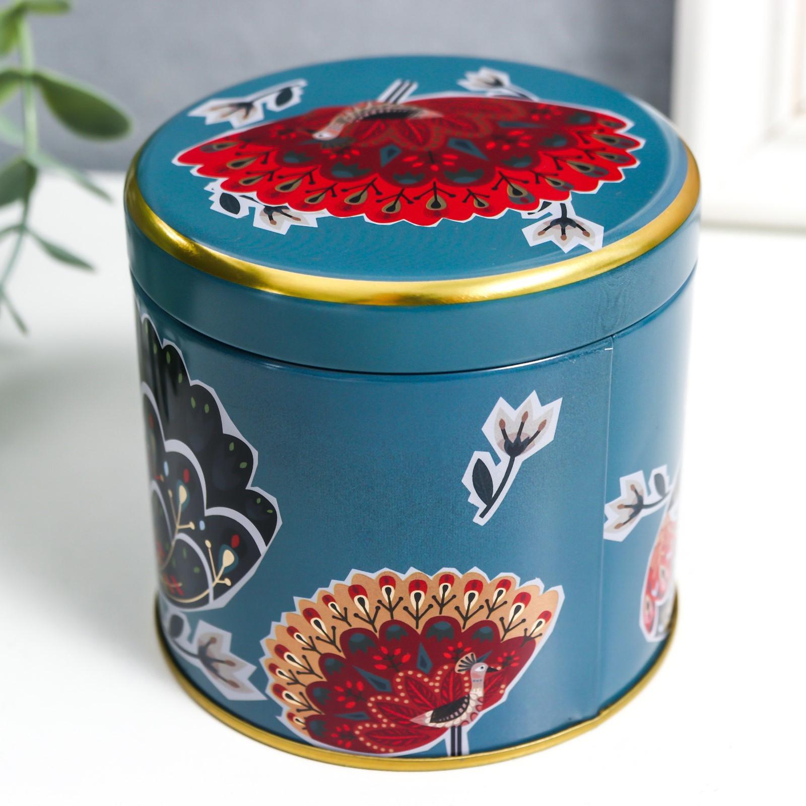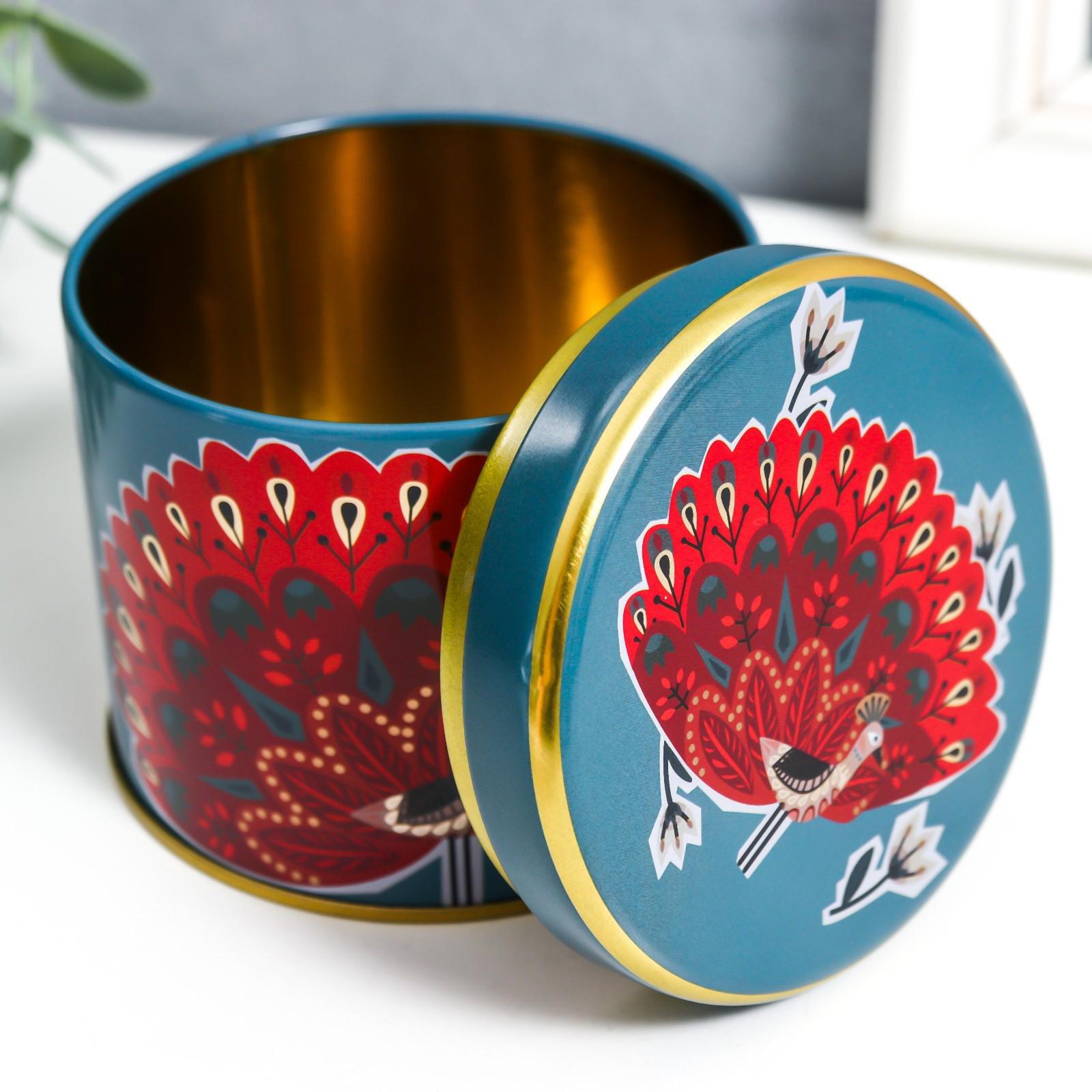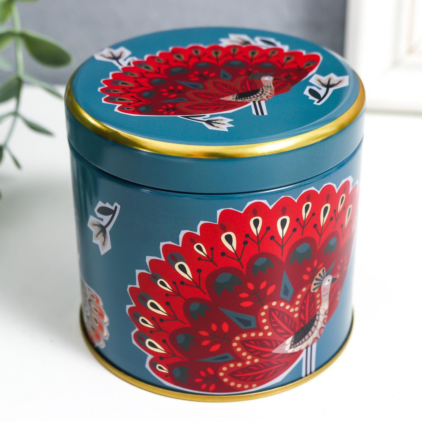 Шкатулка металл круглая "Красный павлин" 8,3х8,5х8,5 см