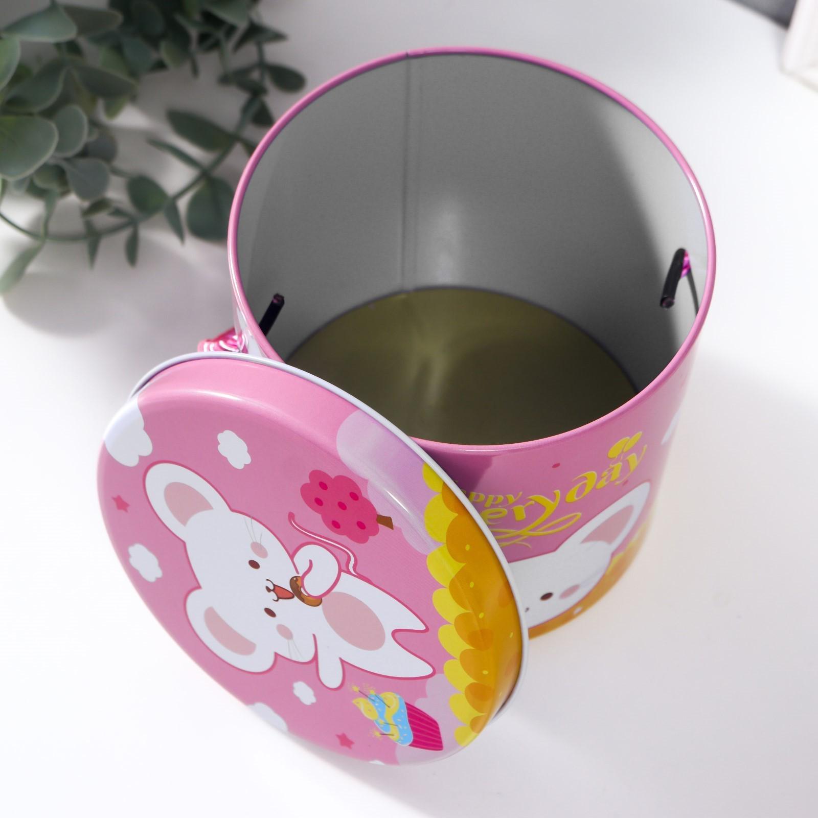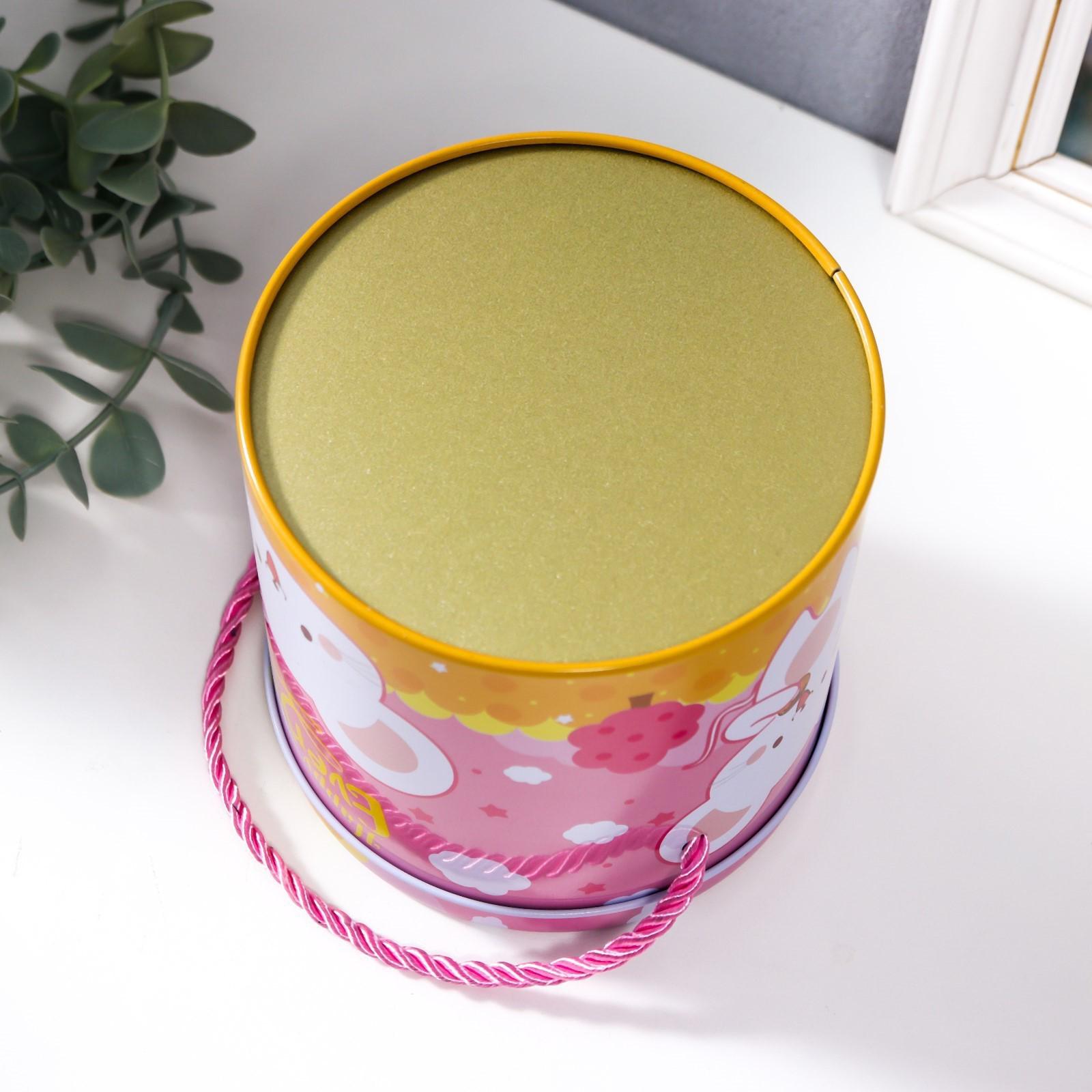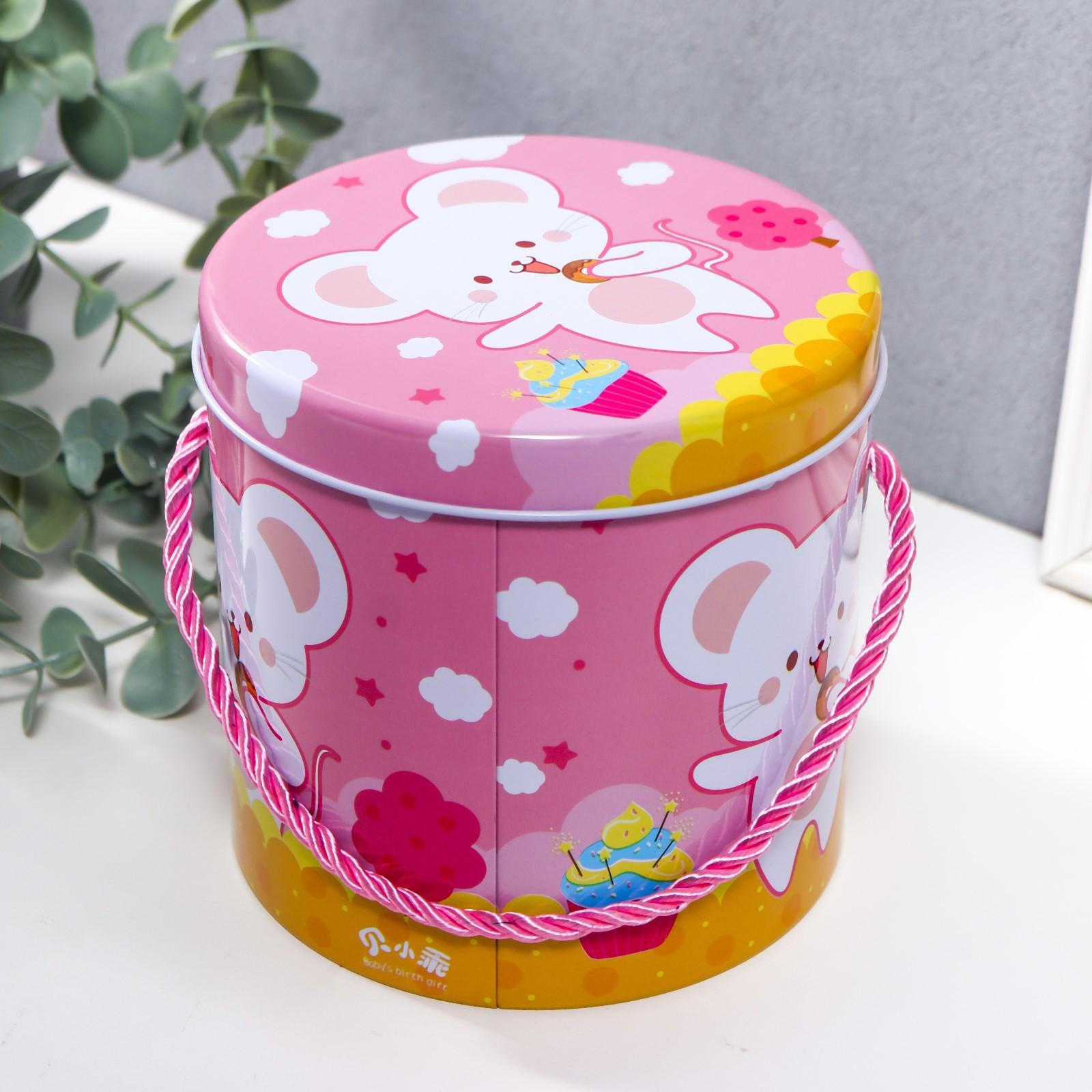 Шкатулка металл цилиндр "Мышка со сладостями" МИКС 11,5х11х11 см