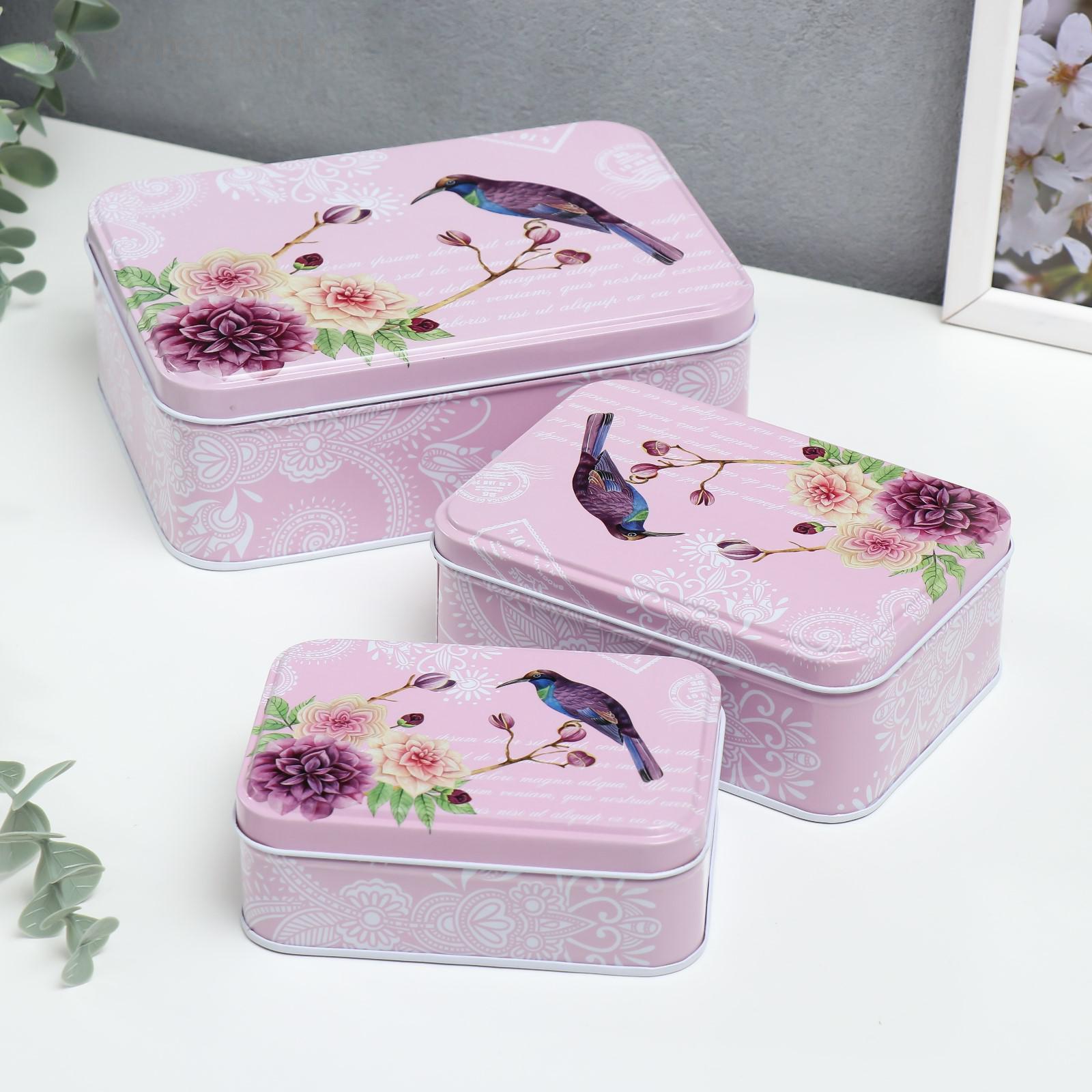 Шкатулка металл "Птица и цветы" набор 3 шт 4,5х8,5х12,3 5,5х10х14,2 6,7х13,3х18,5 см
