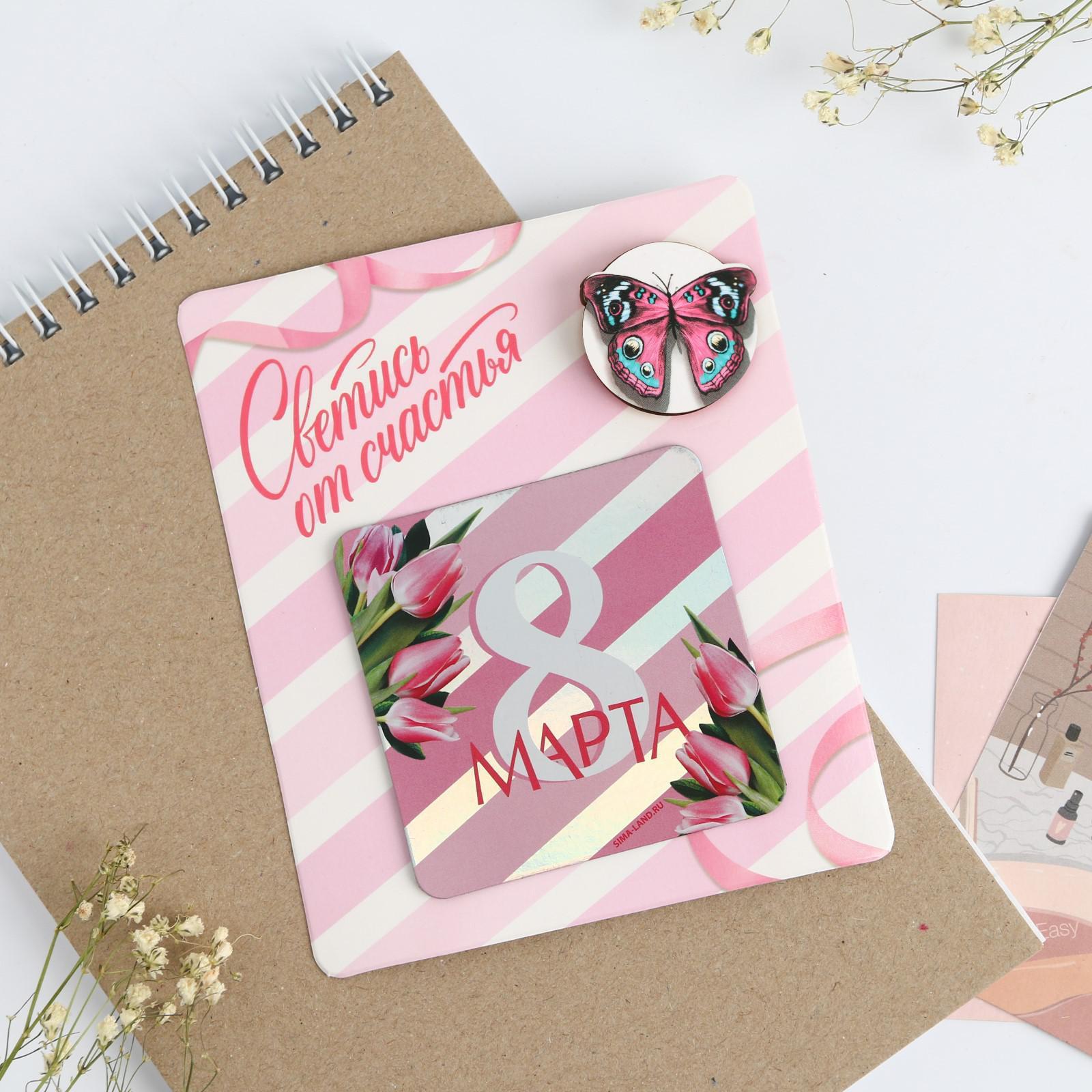 Подарочный набор «Святись от счастья»: магнит, значок, 11 х 13 см