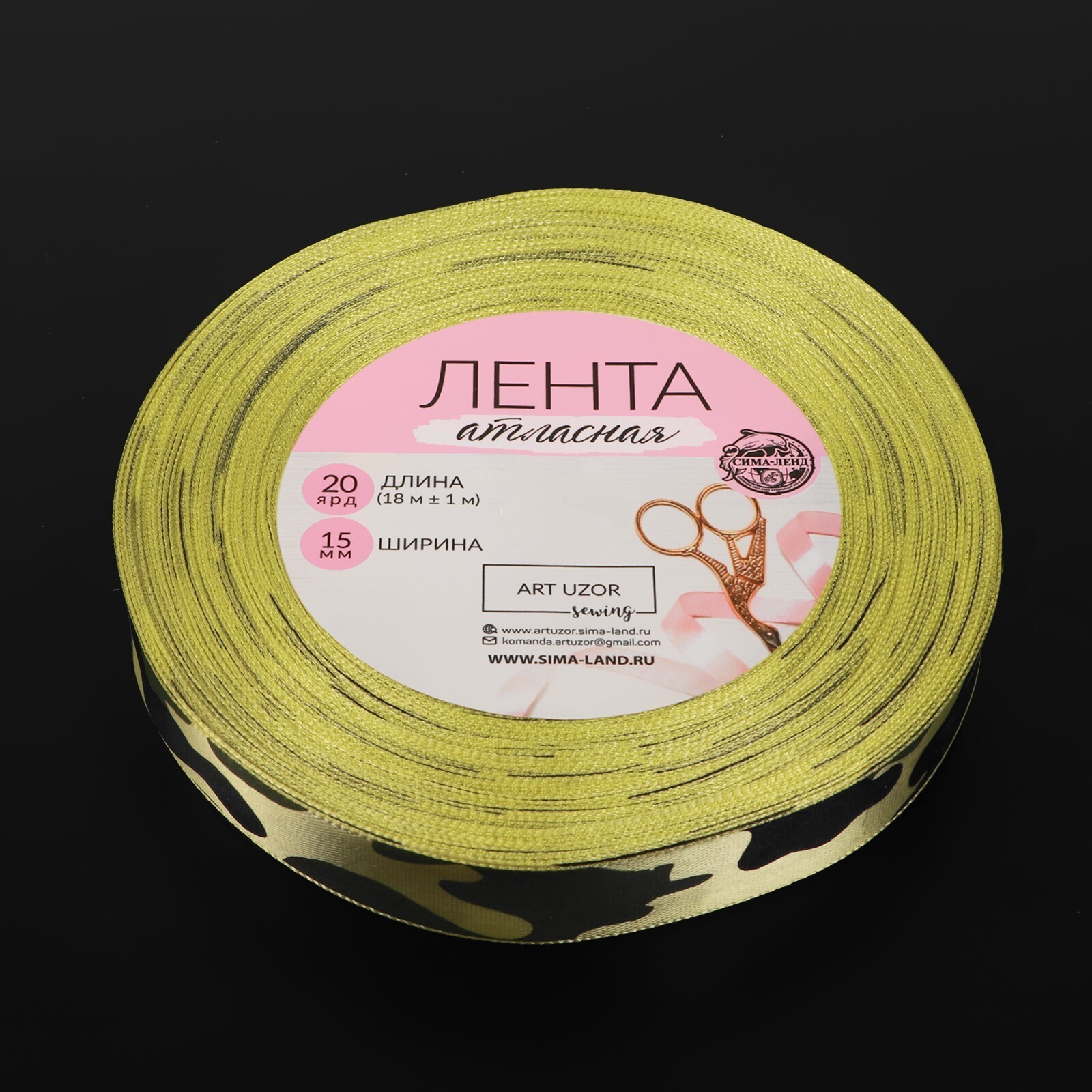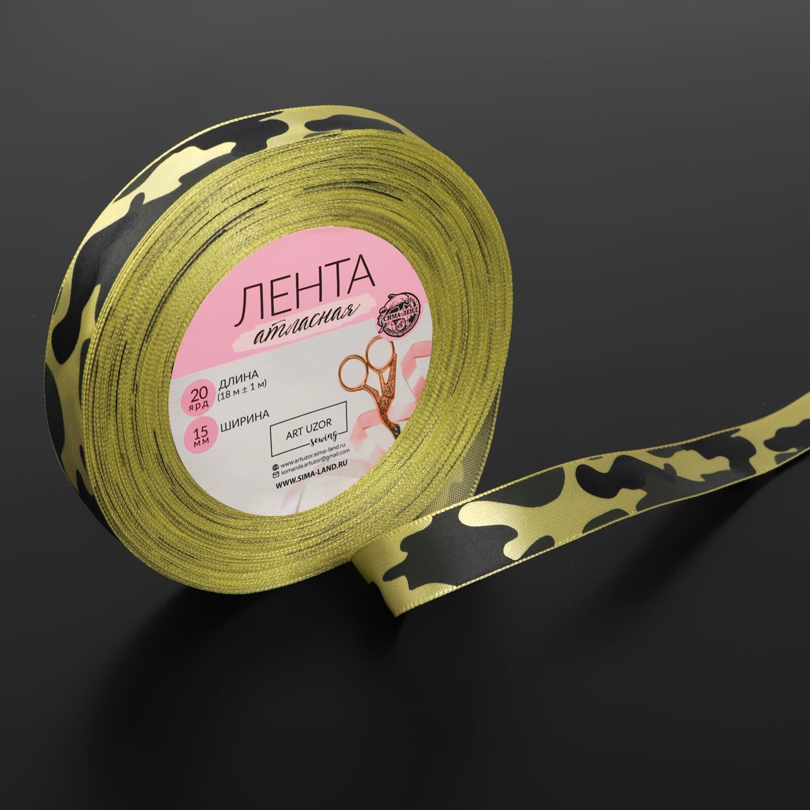 Лента атласная «Камуфляж», 15 мм × 18 ± 1 м, цвет зелёный