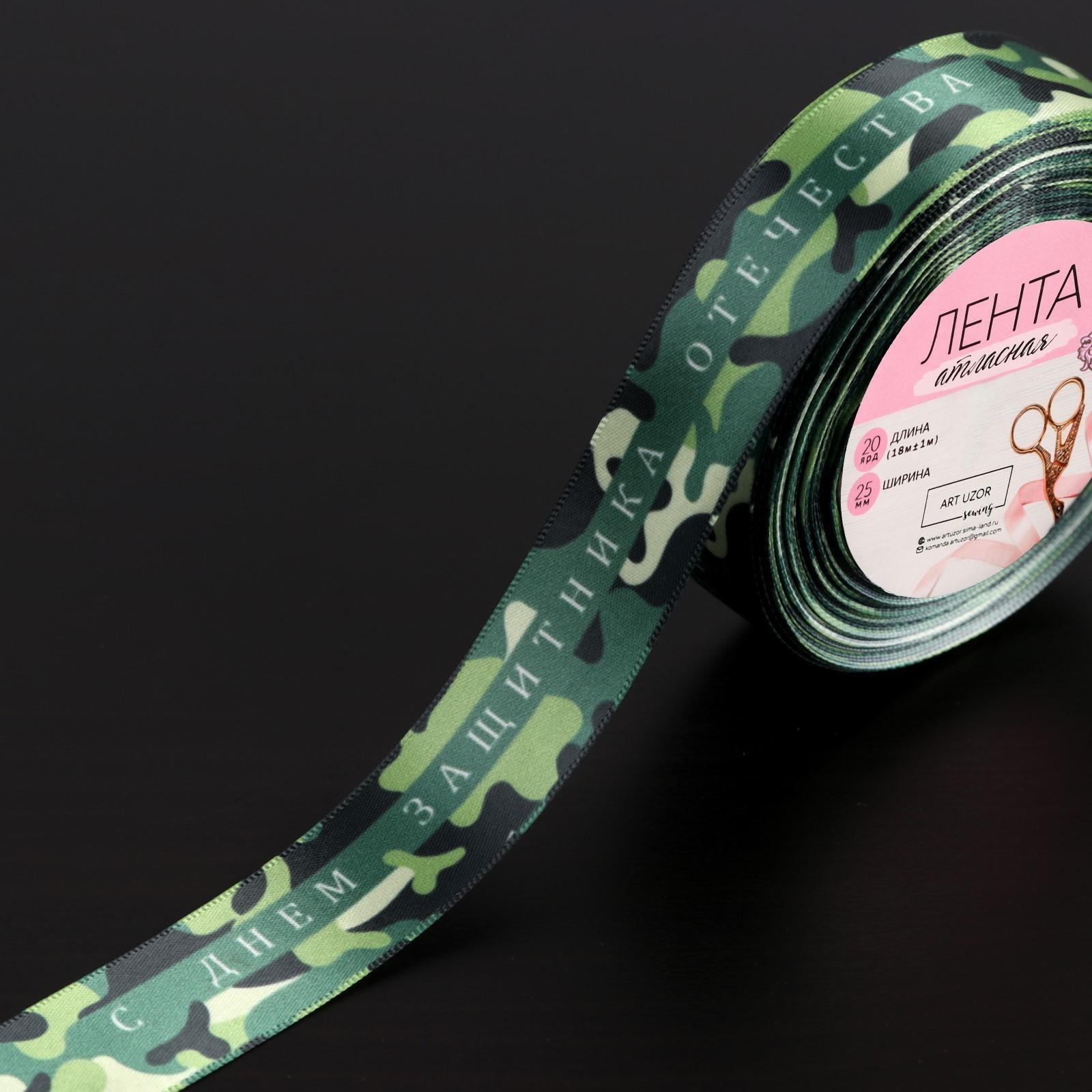 Лента атласная «С Днём защитника Отечества», 25 мм × 18 ± 1 м