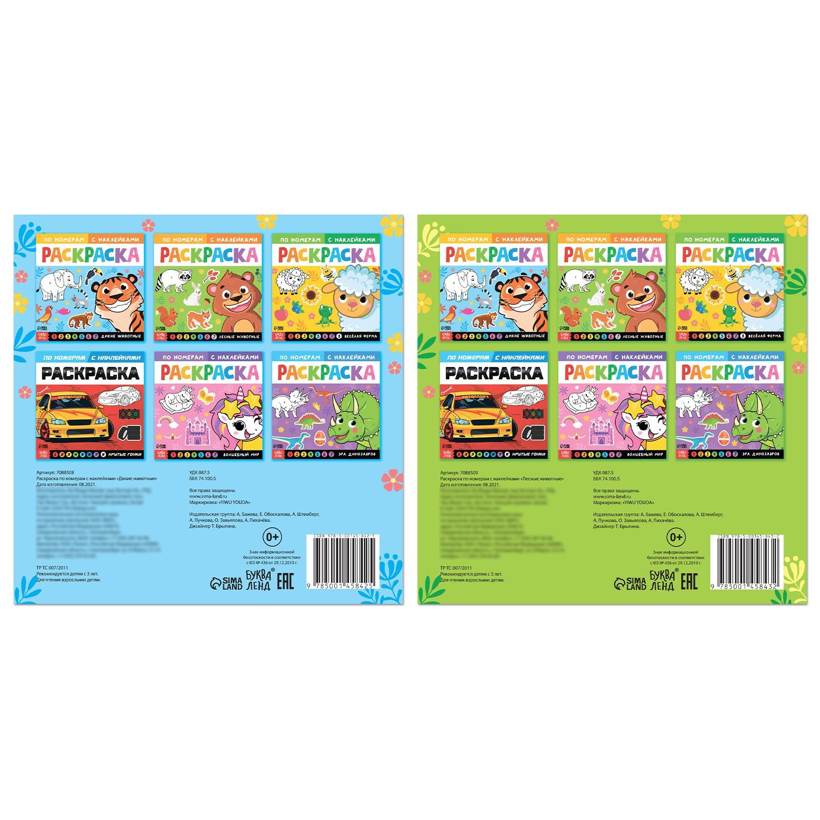 Набор раскрасок по номерам с наклейками «Животные», 2 шт. по 16 стр.