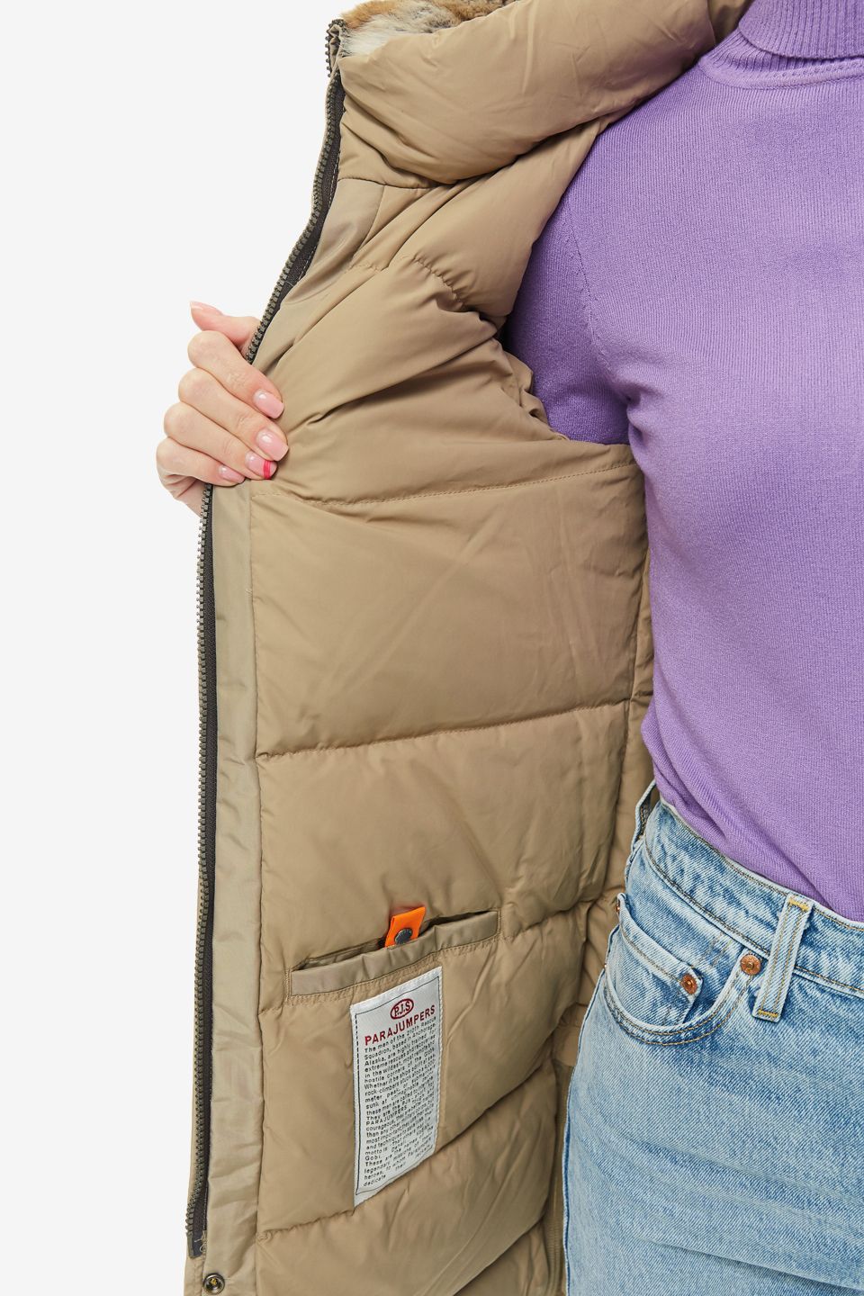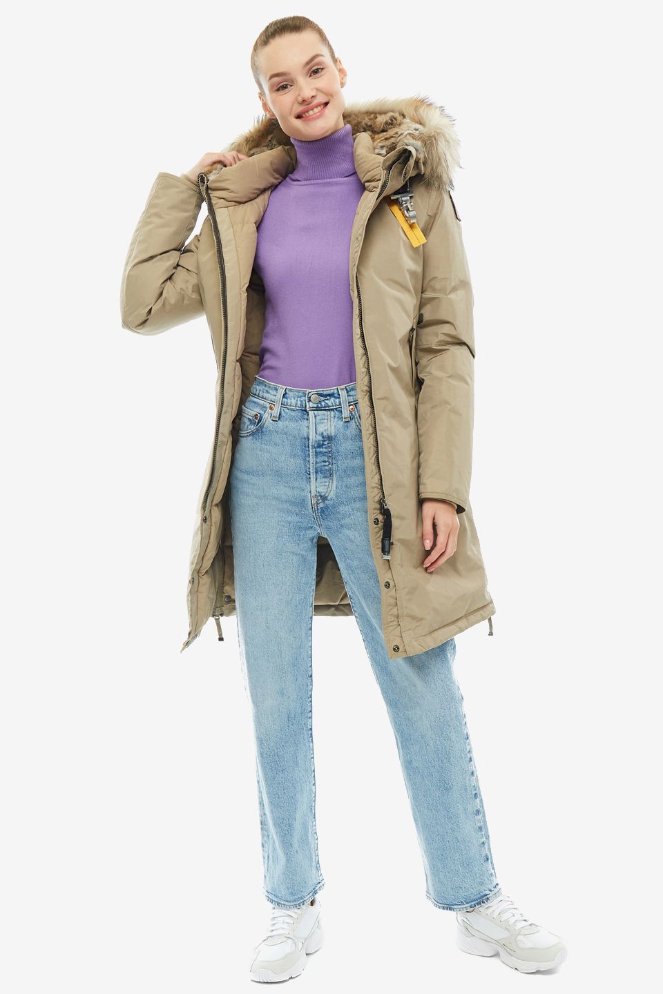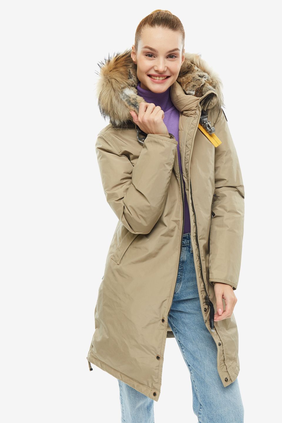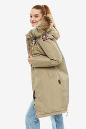 - Состав ткани верх — 100% полиамид, подкладка — 100% полиэстер, наполнитель — 90% пух, 10% перо, на капюшоне — натуральный мех