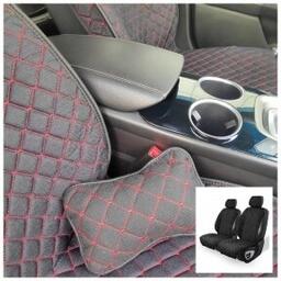 Модельные автонакидки на передние сиденья (льняной комплект) PREMIUM с боковой частью ПОДУШКА в подарок Черные с