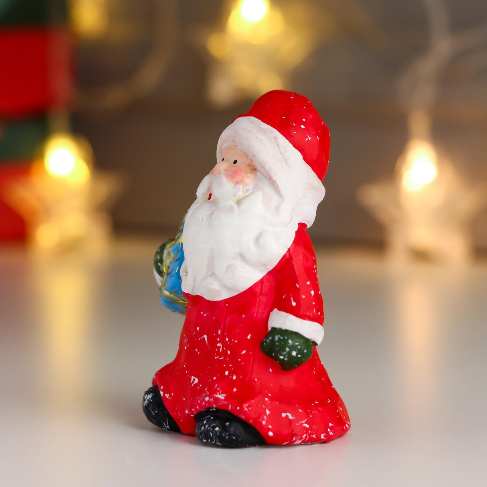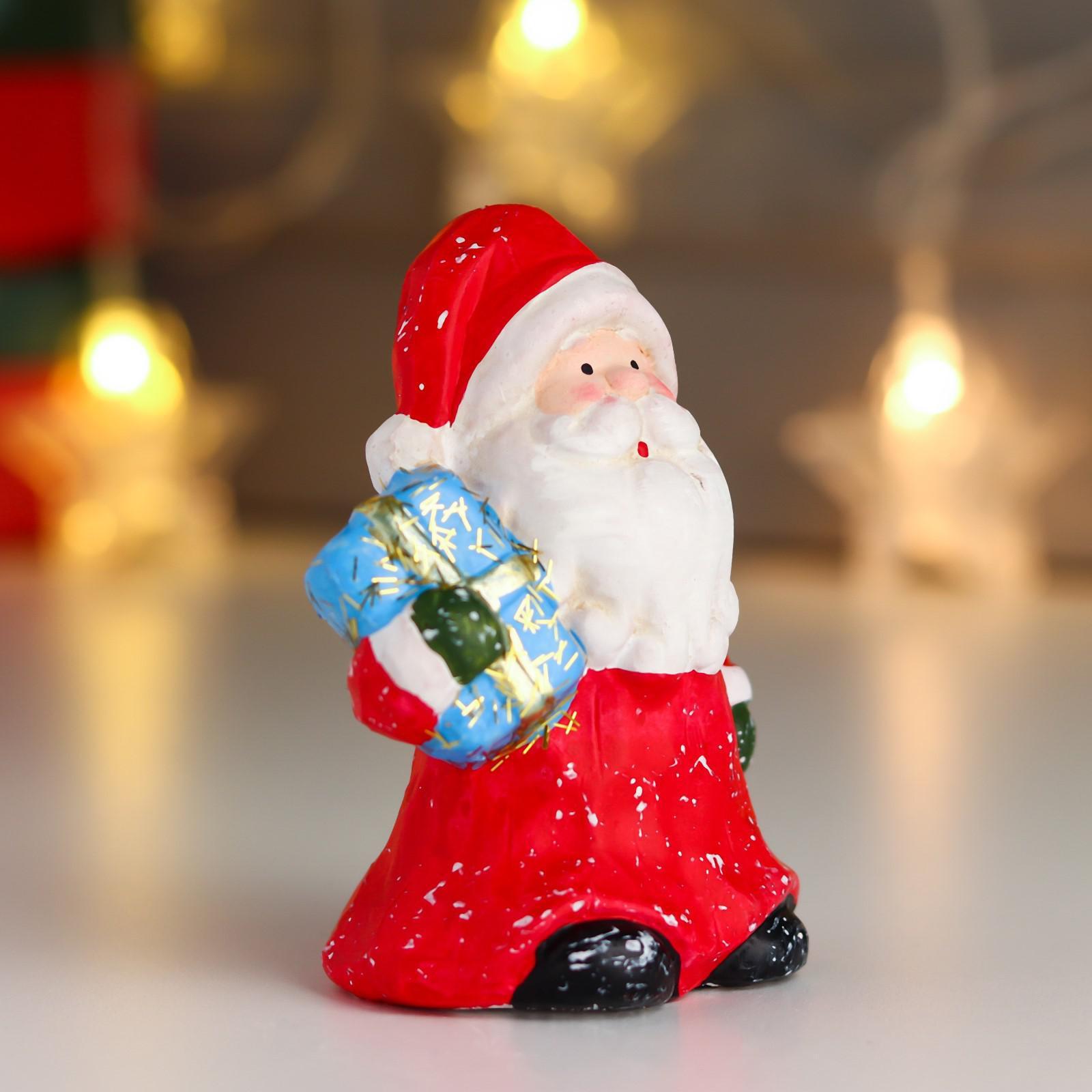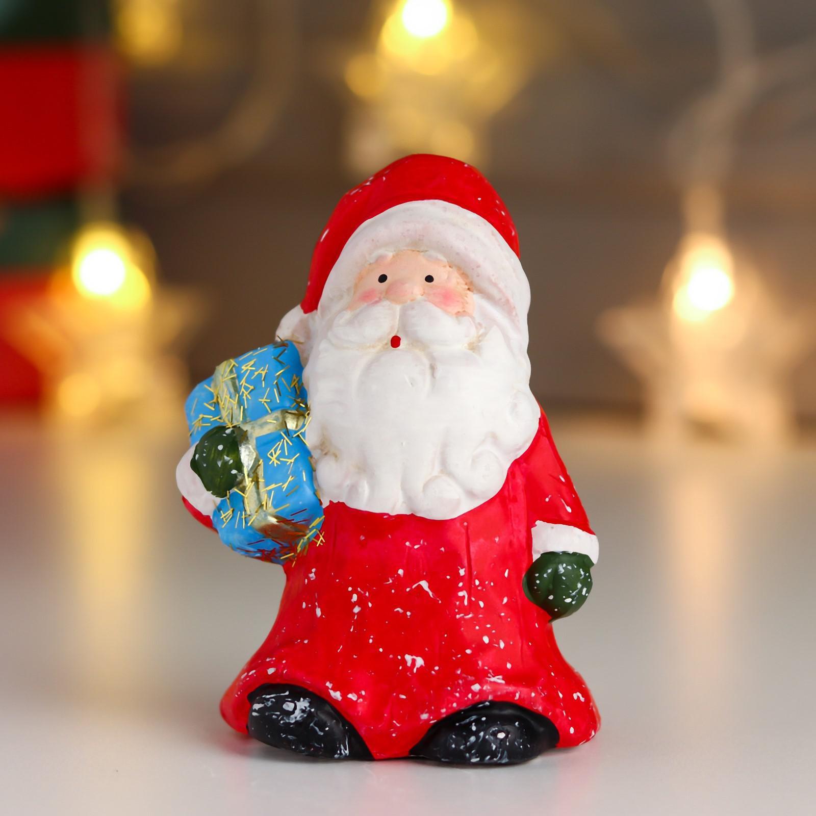 Сувенир керамика "Дед Мороз в красной шубе и колпаке, с подарком" 10х6,3х5 см