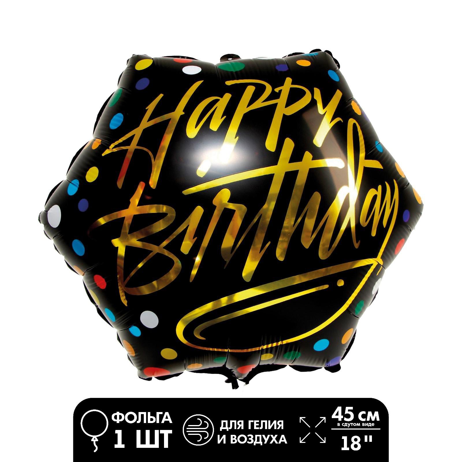 Шар фольгированный 18" «ДР, золото на чёрном», многоугольник