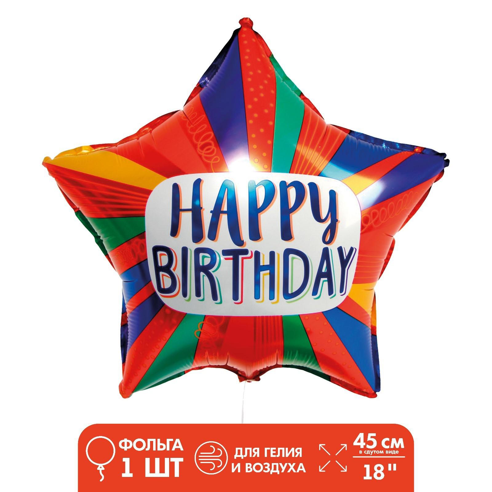 Шар фольгированный 18" «Счастливого ДР», яркая звезда в полоску