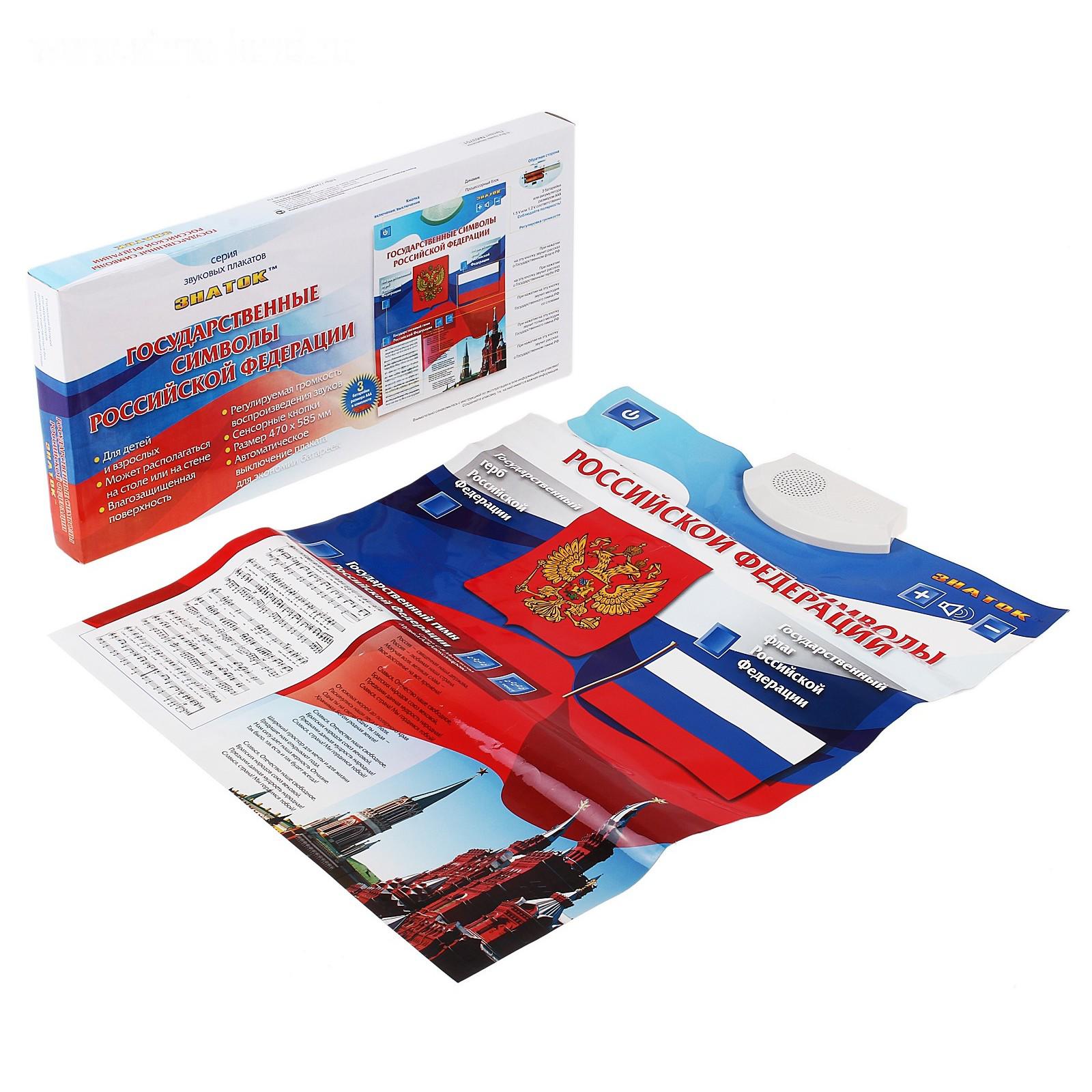 Звуковой плакат "Государственные символы РФ" ознакомит Вашего ребёнка с государственными символами Российской Федерации, поможет узнать историю их возникновения, послушать гимн Российской Федерации и даже выучить его наизусть. Данный плакат рекомендуется применять и на уроках истории и обществознания в школе, как наглядное и звуковое пособие. Рекомендован для детей от 3-х лет.