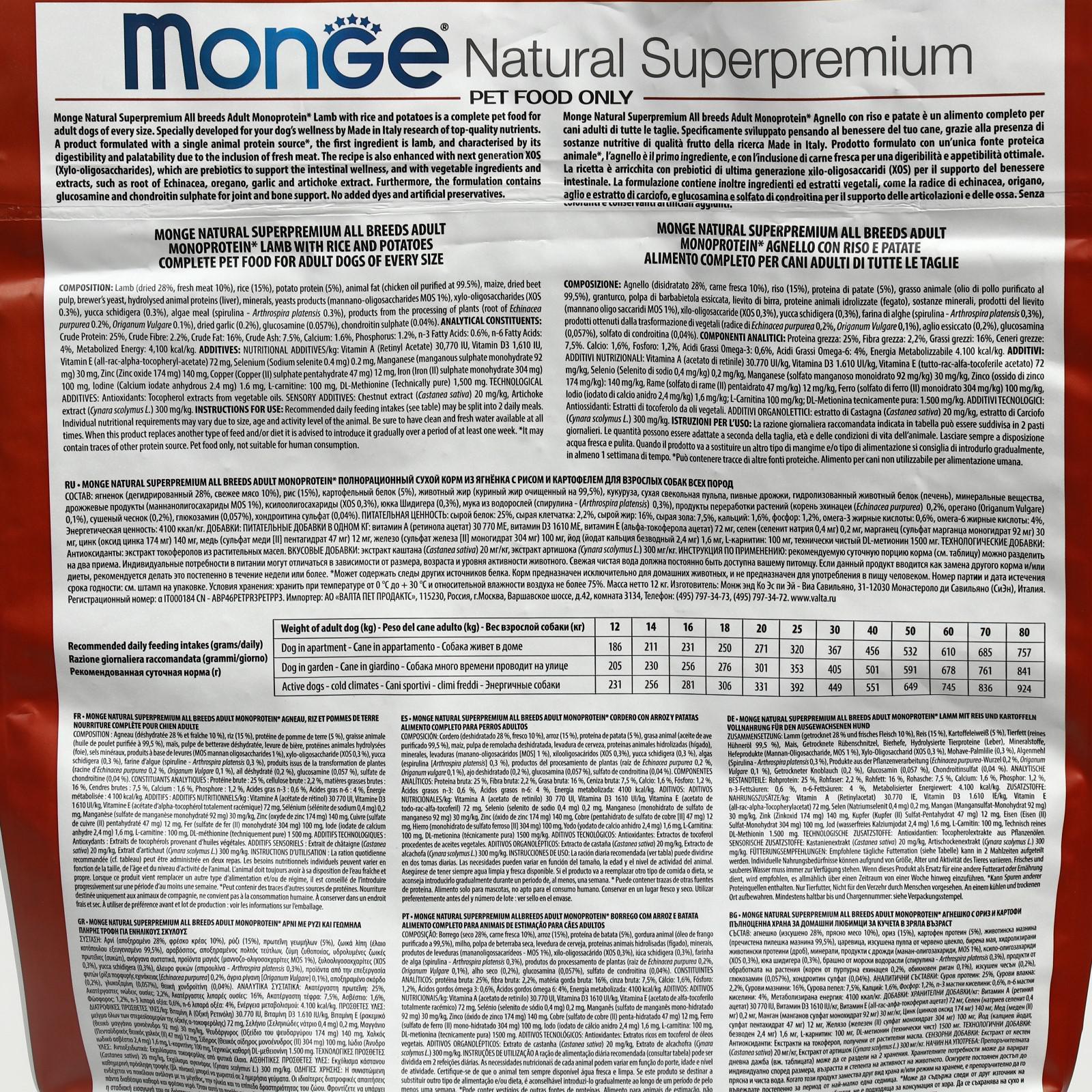 Сухой корм Monge Dog Speciality для собак, ягненок/рис/картофель, 12 кг.