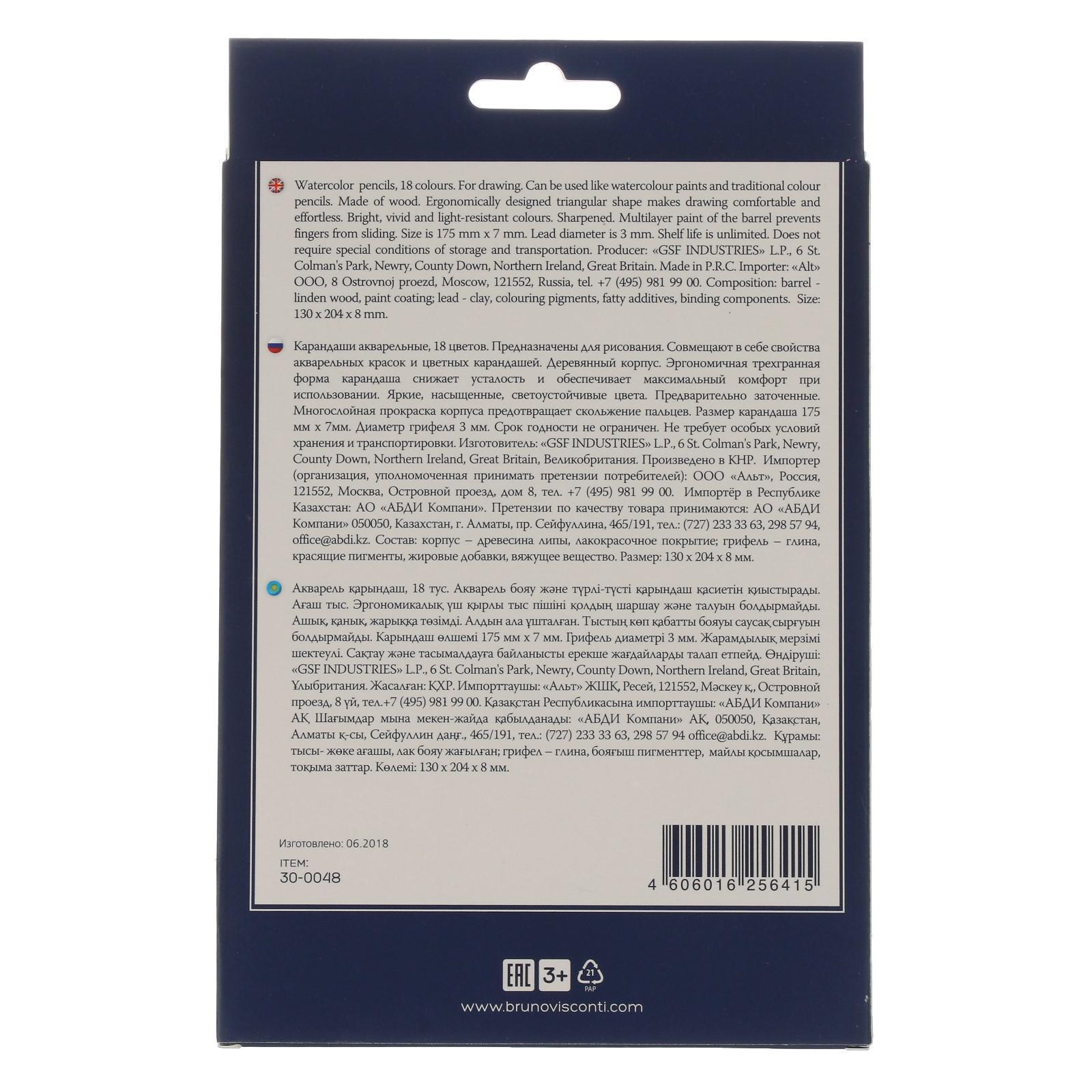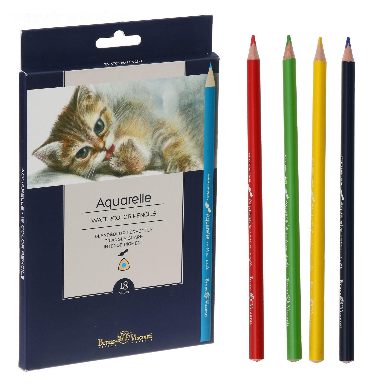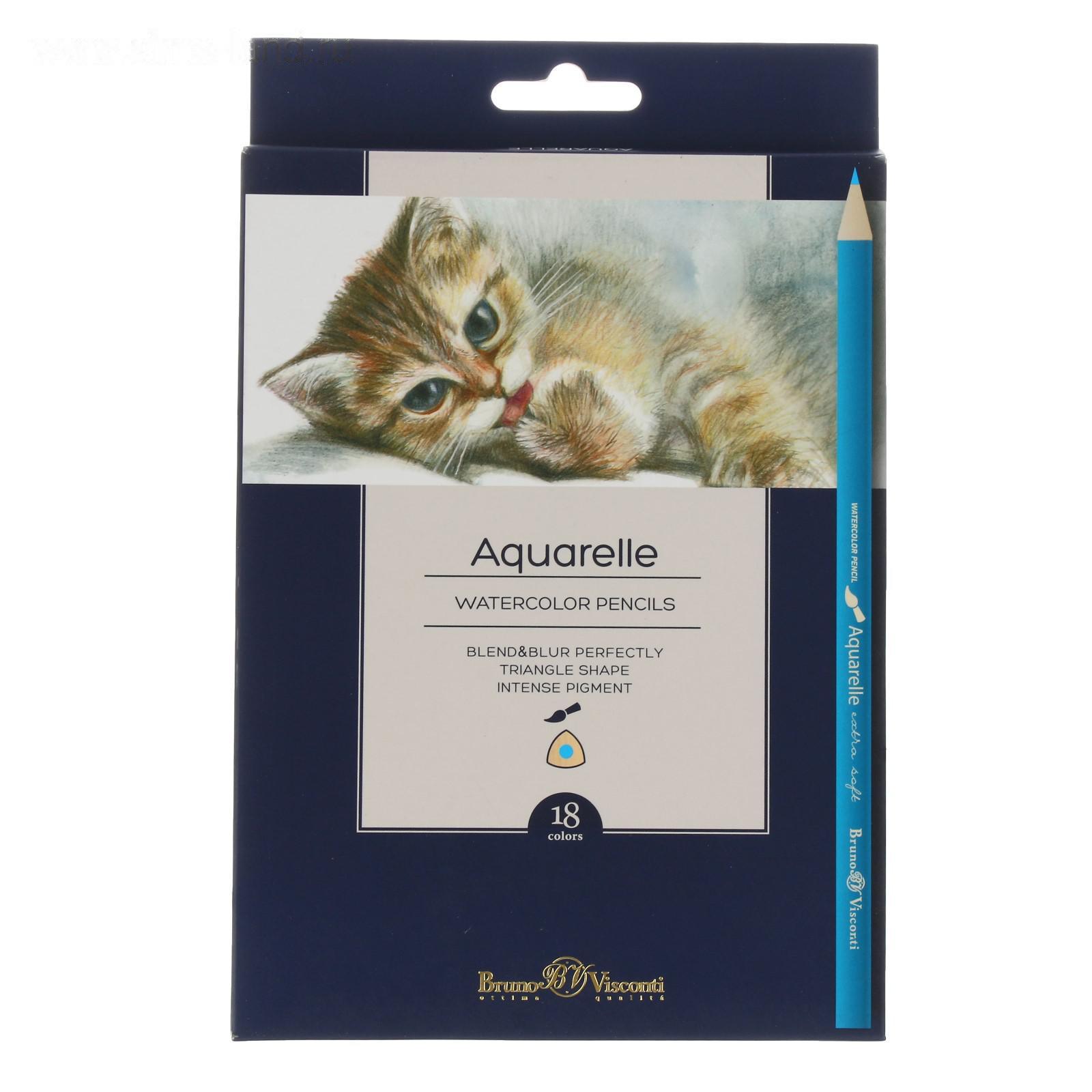 Карандаши акварельные 18 цветов BrunoVisconti Aquarelle, трёхгранные