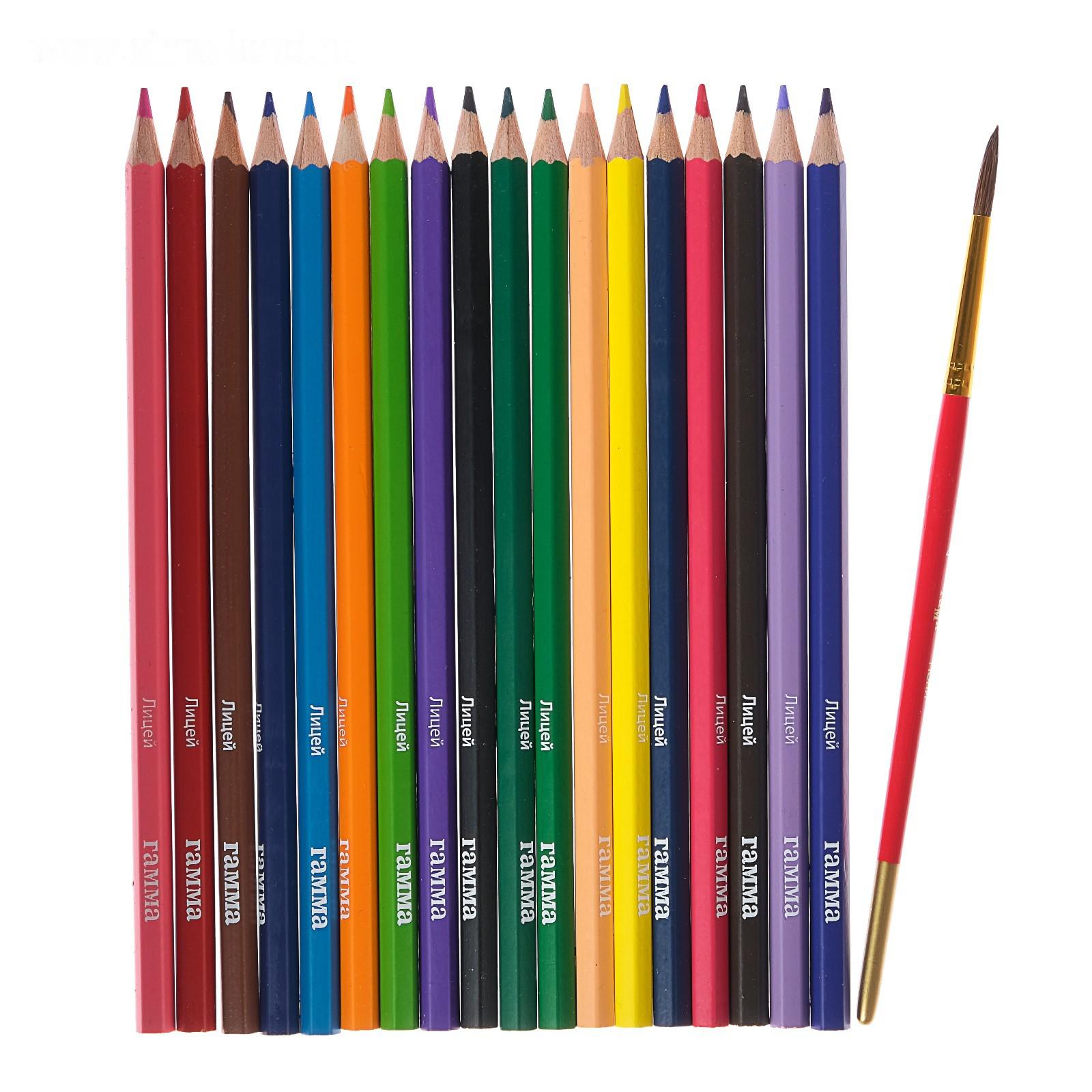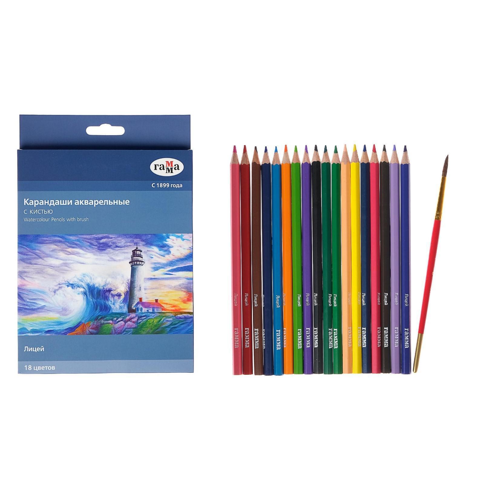 Карандаши цветные акварельные 18 цветов, "Гамма" "Лицей", с кистью, шестигранные