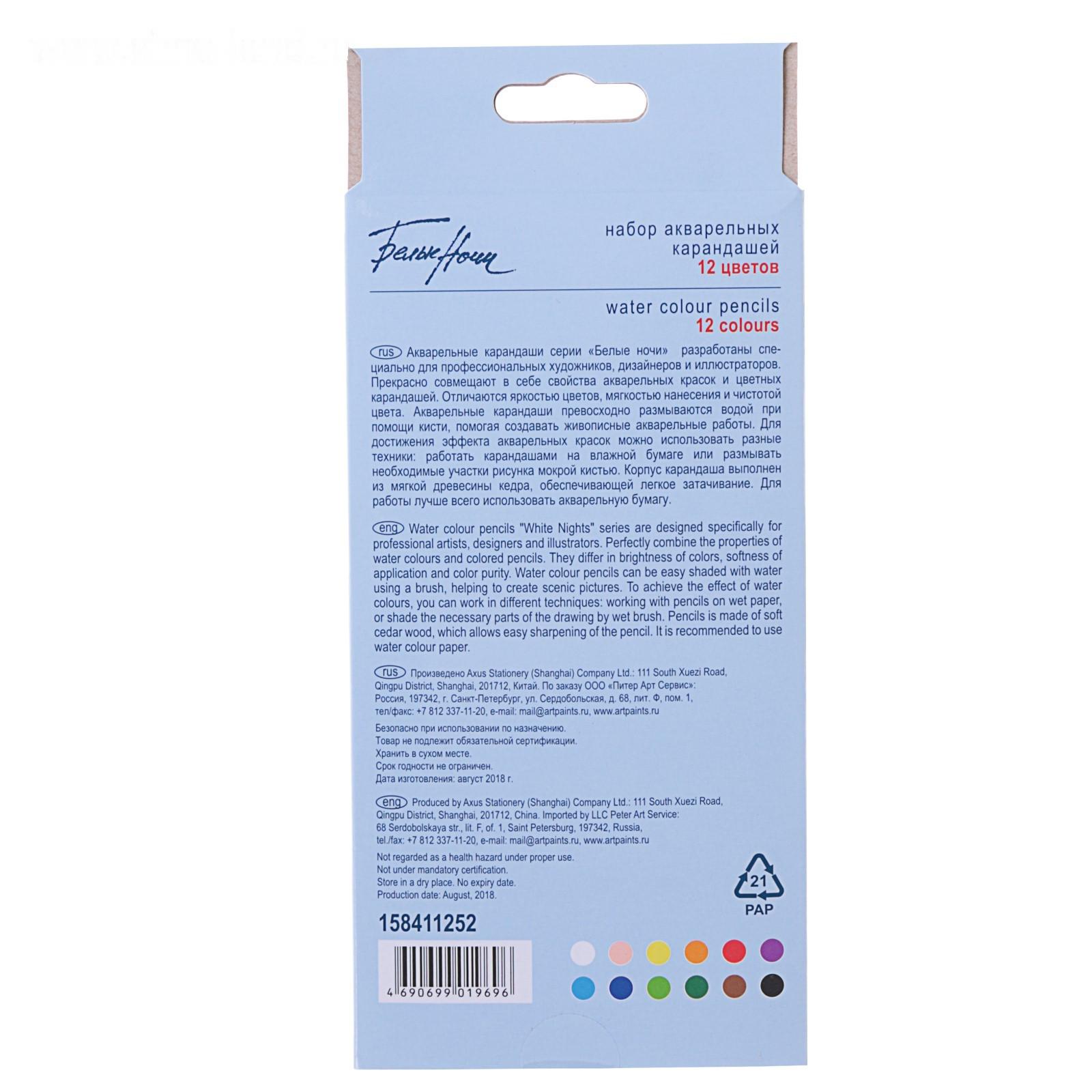 Карандаши акварельные набор 12 цветов, ЗХК "Белые ночи" в картонной коробке