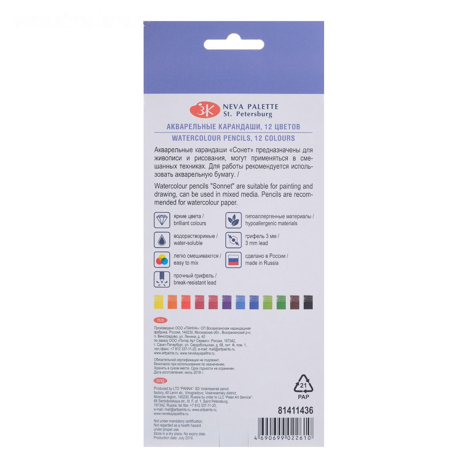 Карандаши акварельные набор 12 цветов, ЗХК "Сонет"