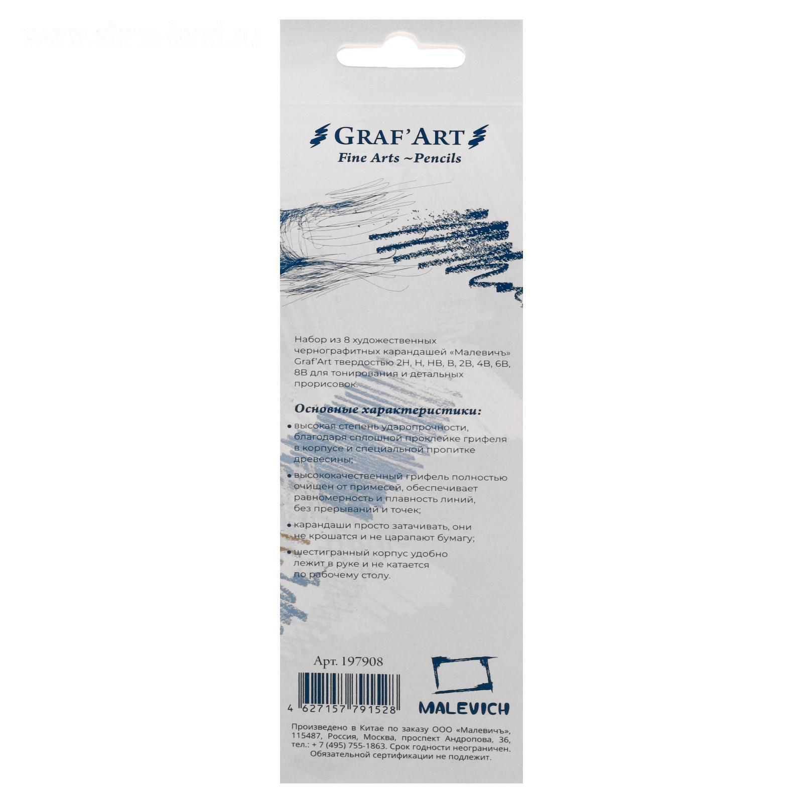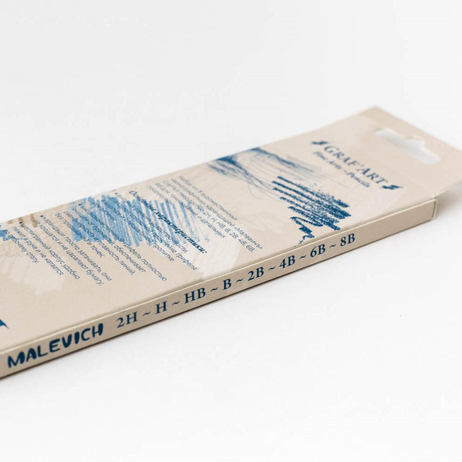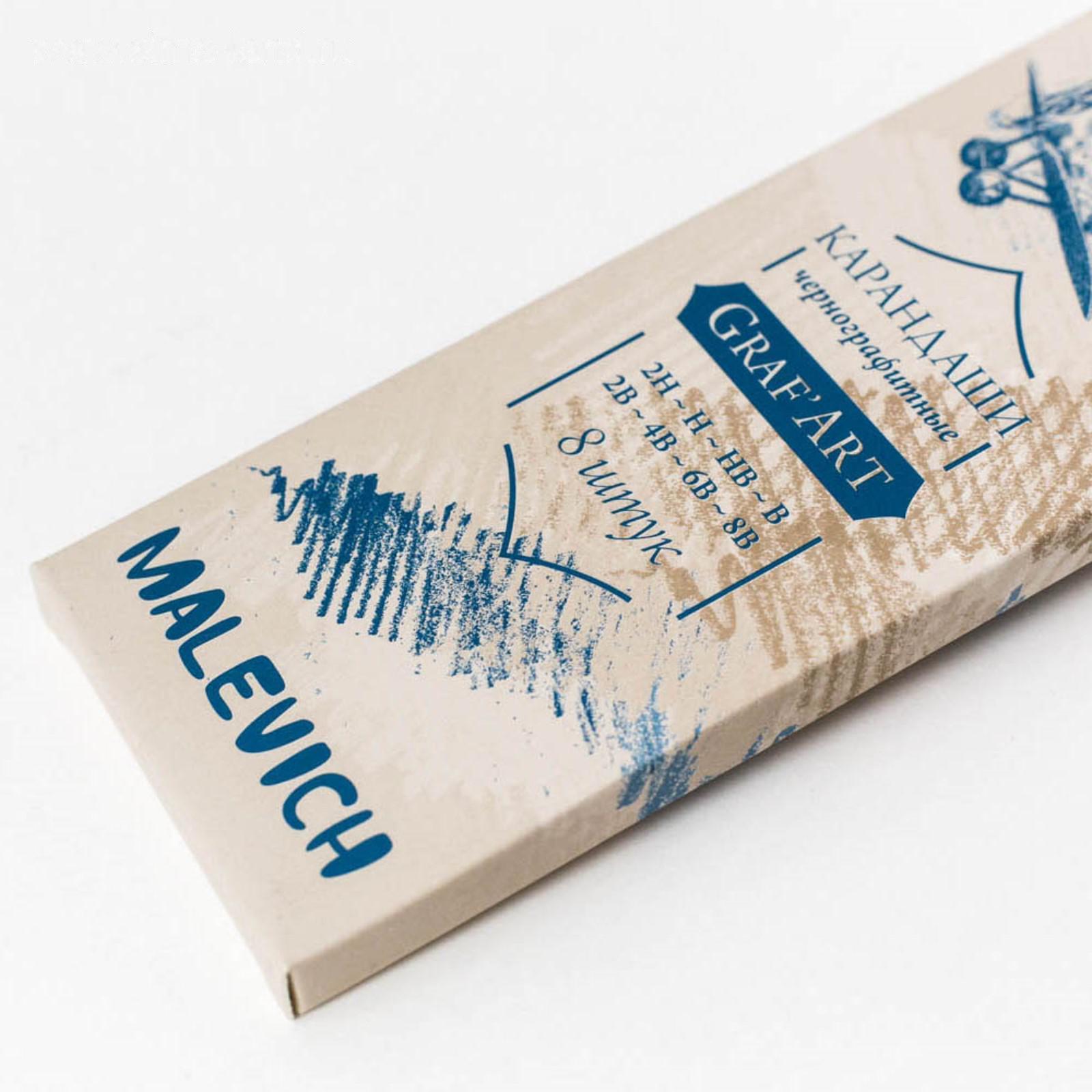 Набор чернографитных карандашей разной твёрдости "Малевичъ" Graf'Art, 8 штук, 8B-2H, в картонном пенале с европодвесом