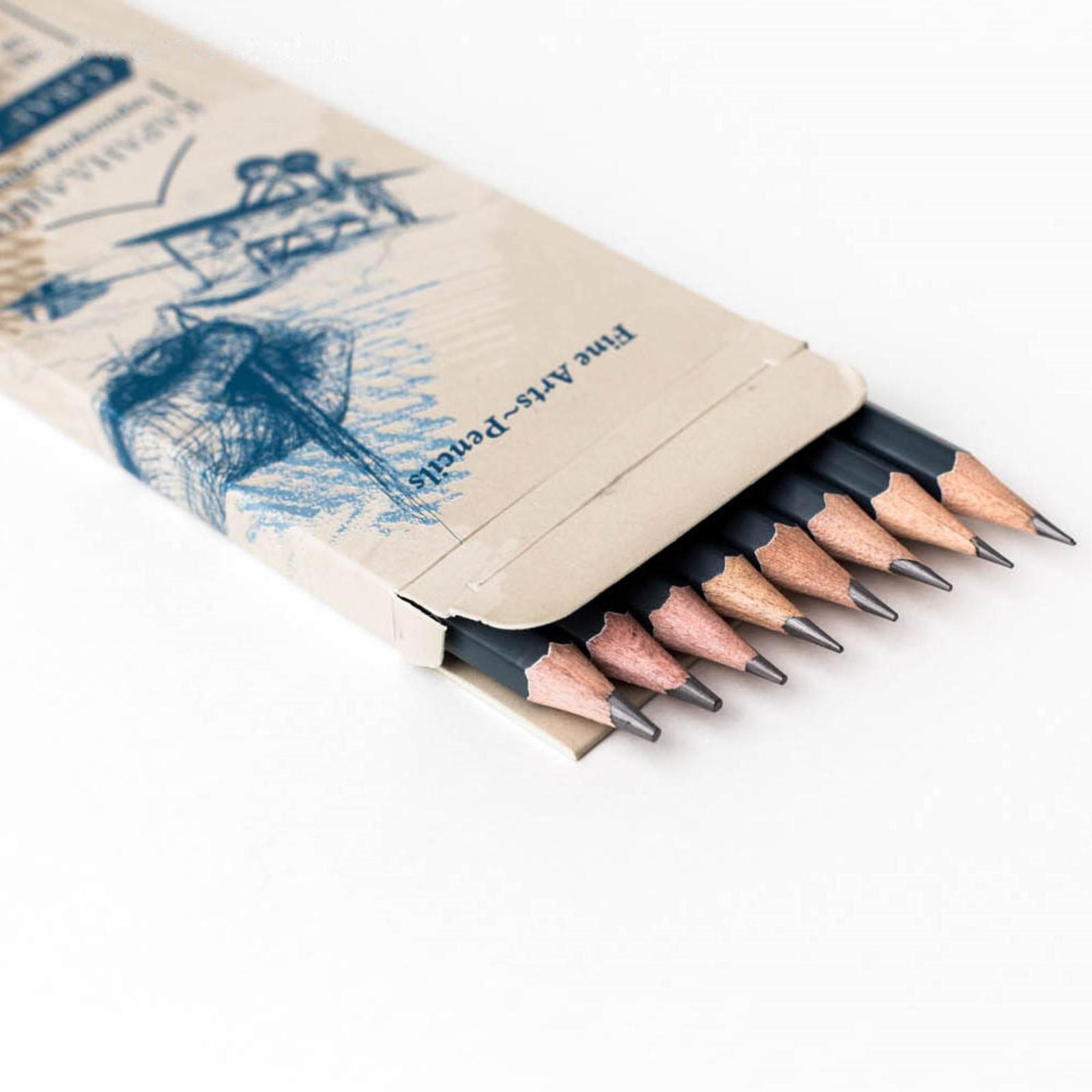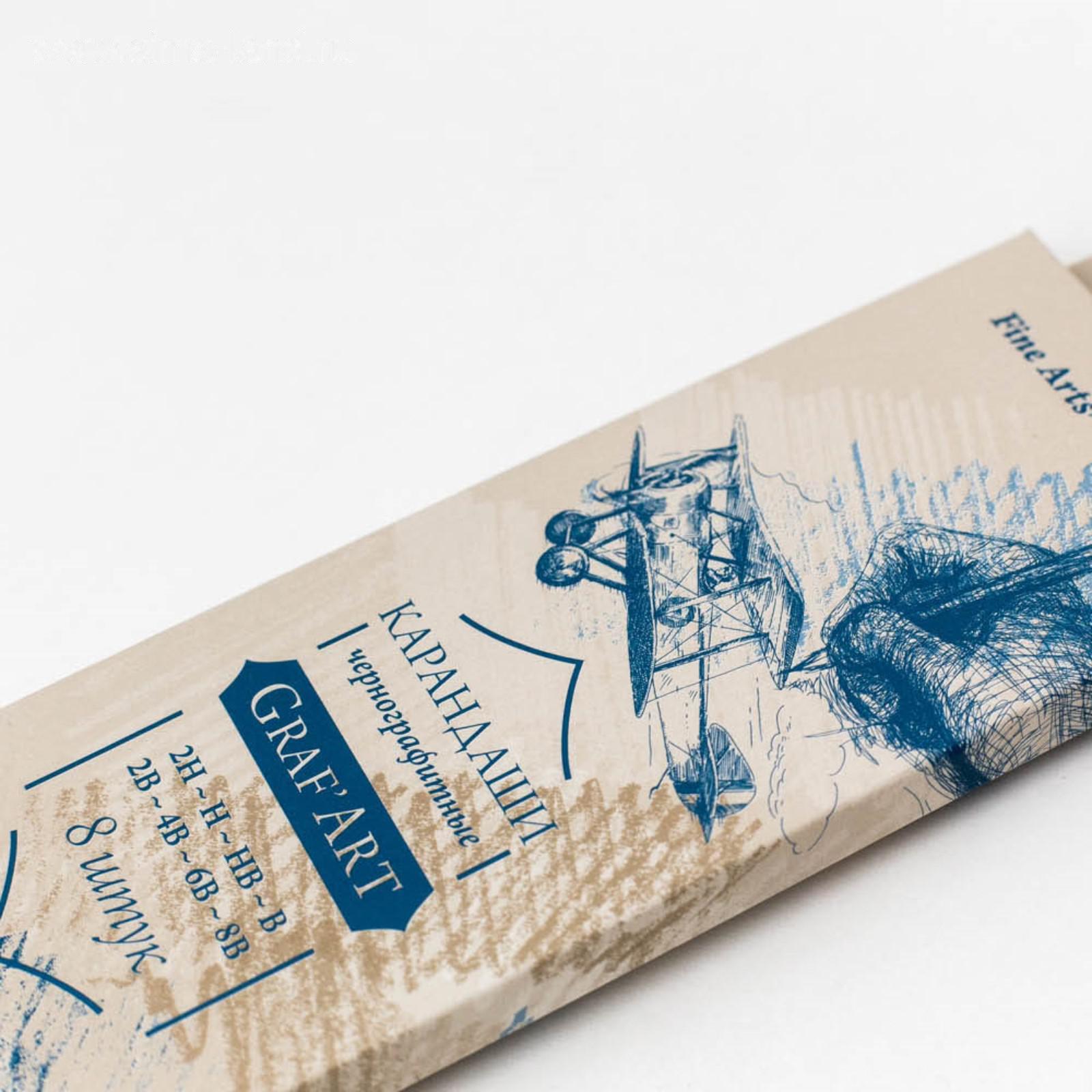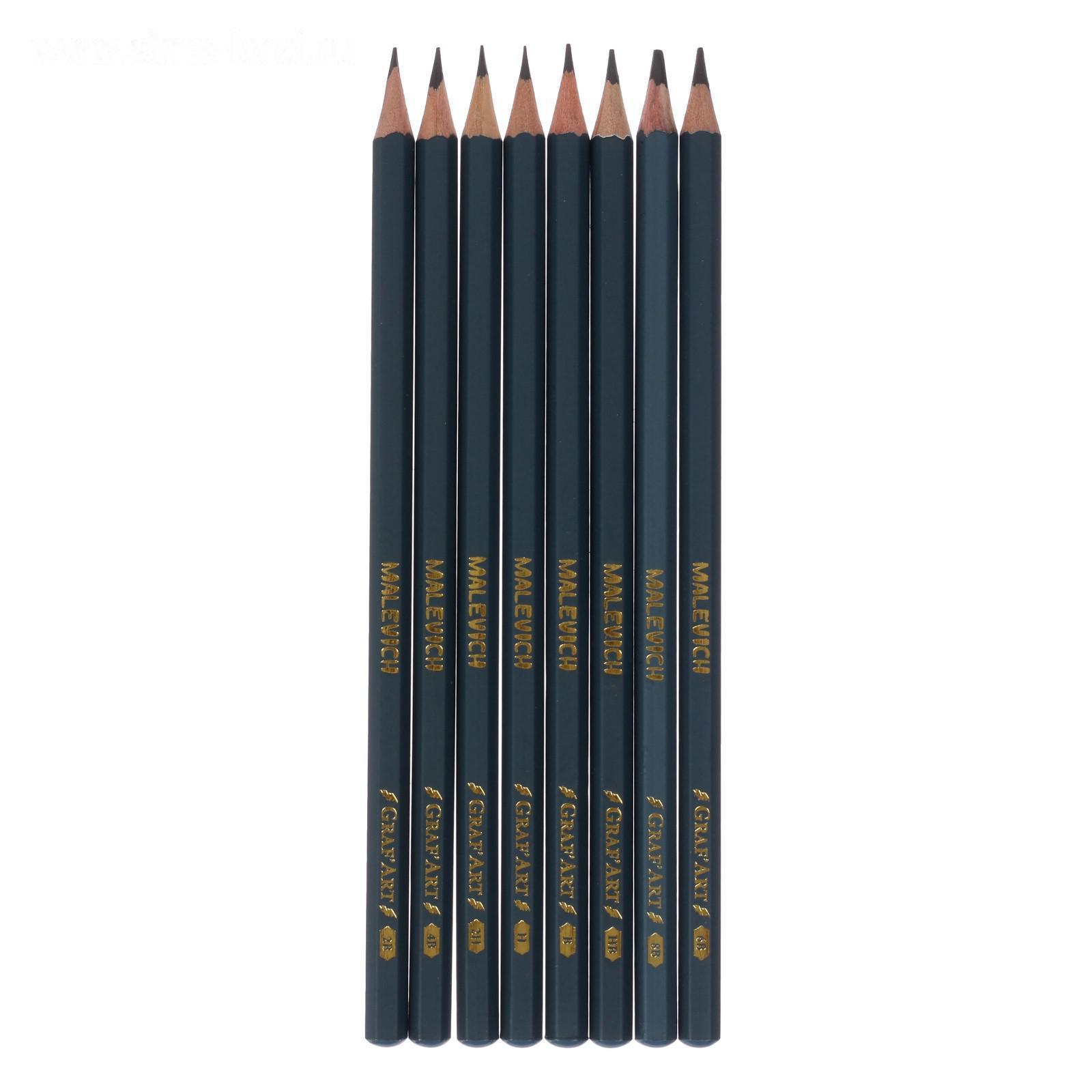 Набор чернографитных карандашей разной твёрдости "Малевичъ" Graf'Art, 8 штук, 8B-2H, в картонном пенале с европодвесом