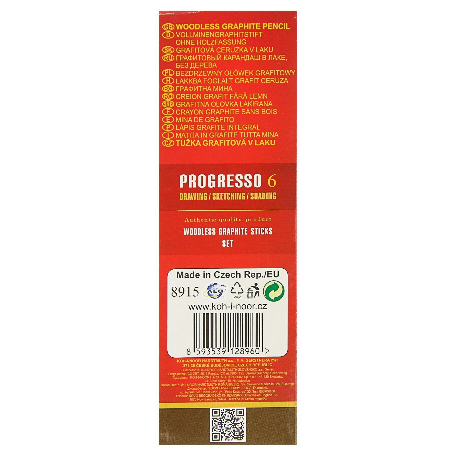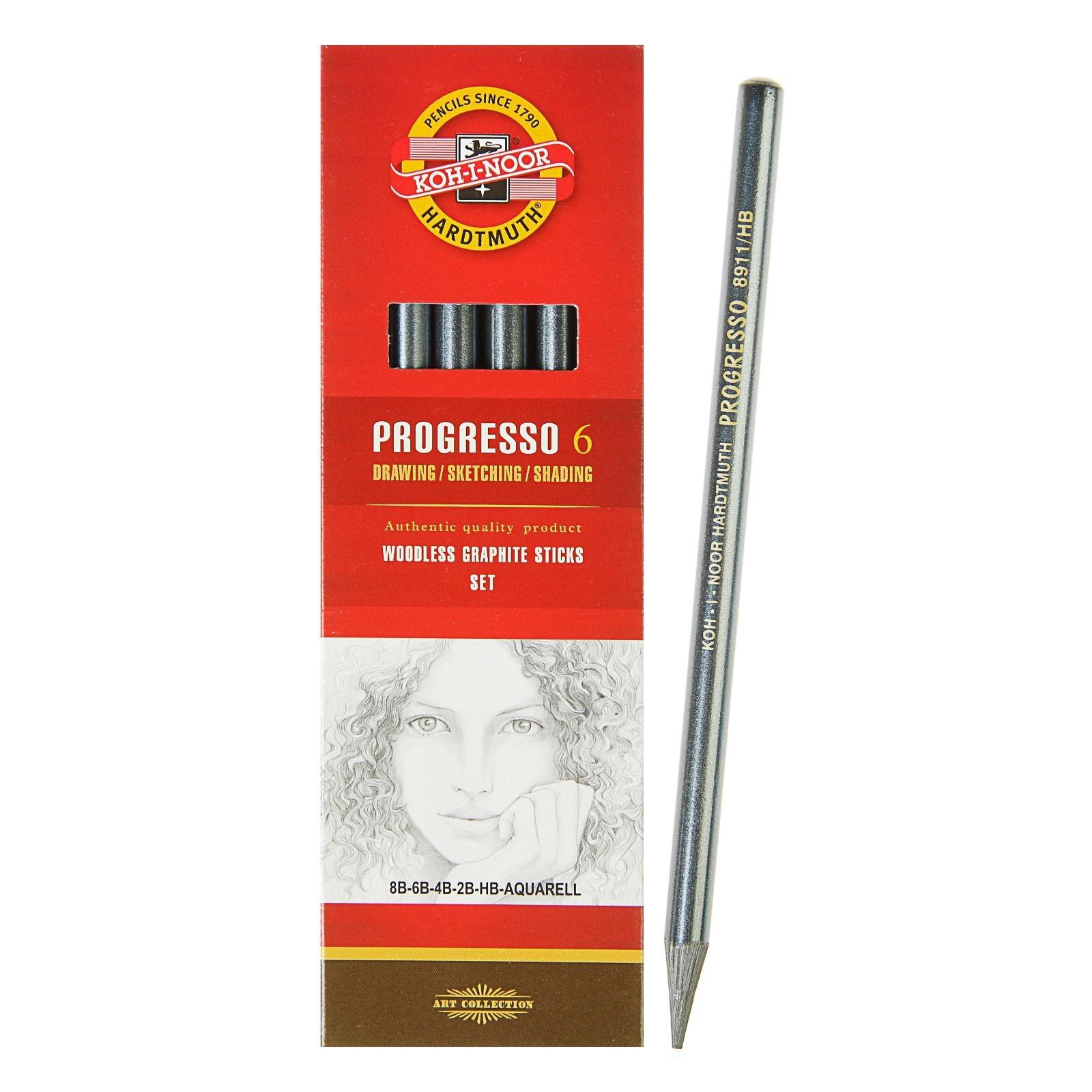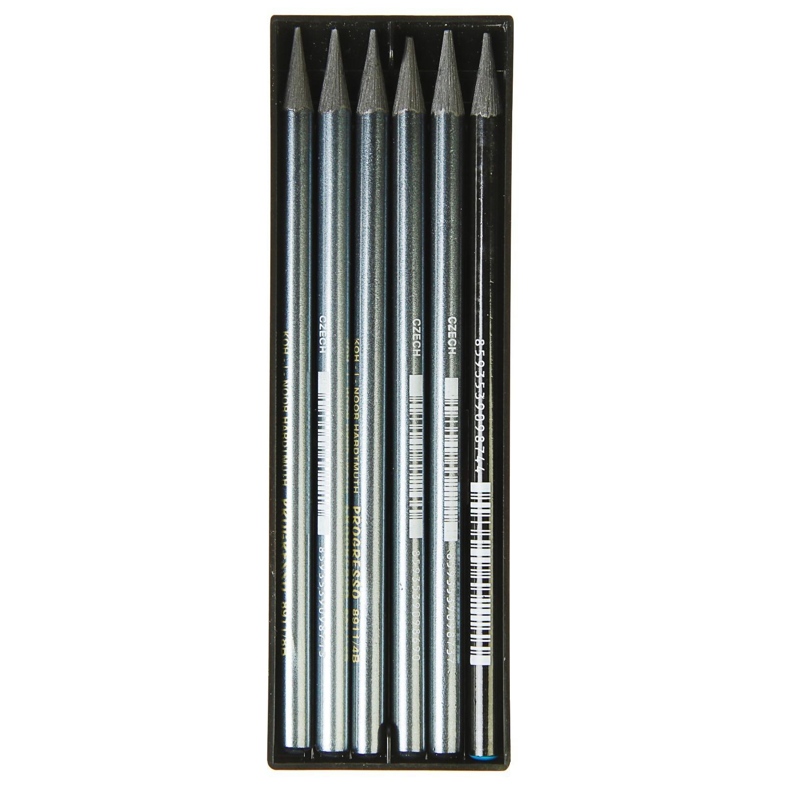 Набор карандашей ч/г целнографитовые разной твердости K-I-N PROGRESSO 8915 6шт 8B-HB, картон