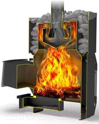 - Особенности конструкции выносная топка, конвекционно-вентилируемый кожух