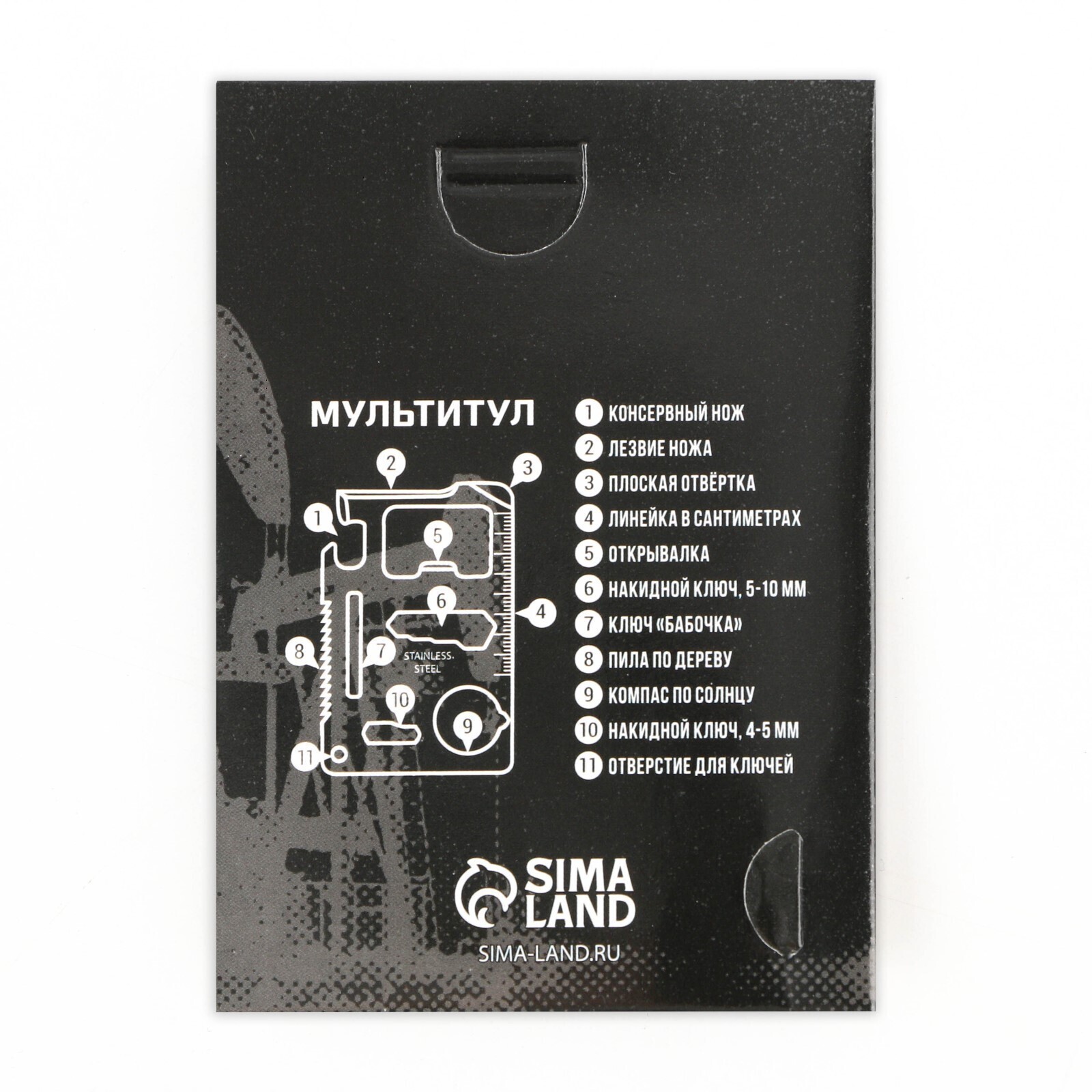 Схема функционала представлена на обороте подарочной открытки. В комплекте идет специальный чехол для ножа, изготовленный из эко кожи.