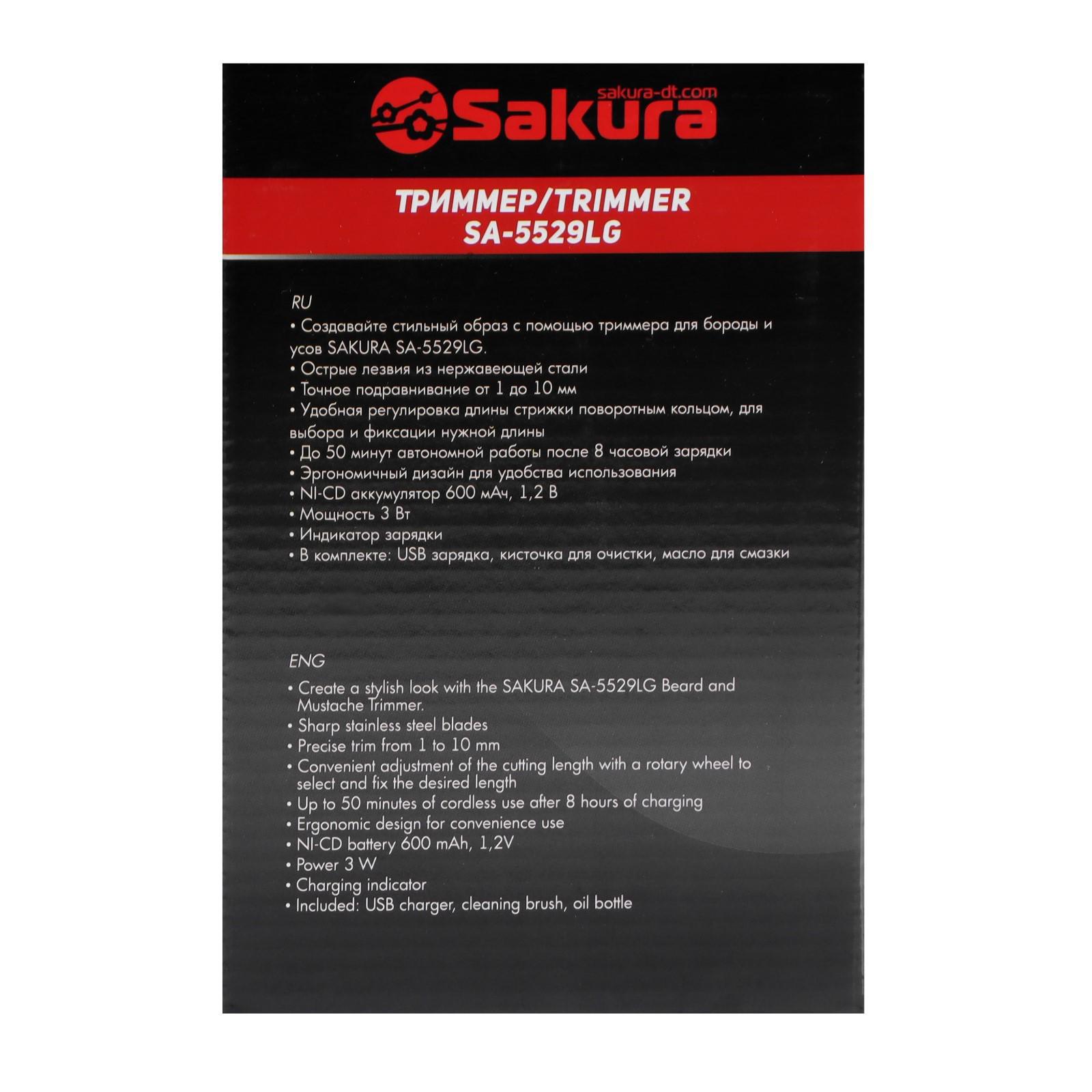 Триммер для волос Sakura SA-5529LG, для бороды/усов, 0.5-10 мм, АКБ, серебристо-чёрный