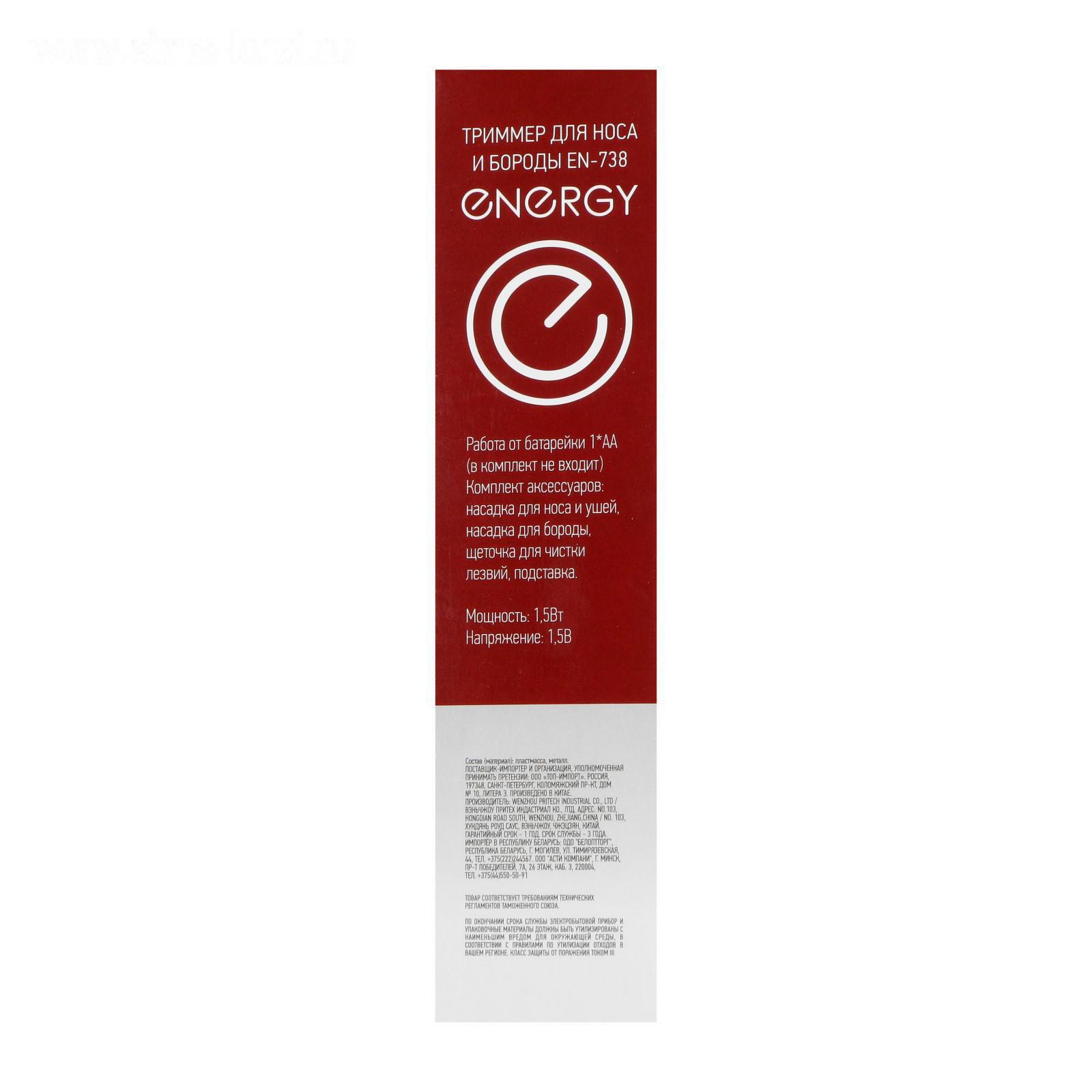 Триммер для волос ENERGY EN-738, для носа/ушей/бороды, 2 насадки, 1хАА (не в комплекте)