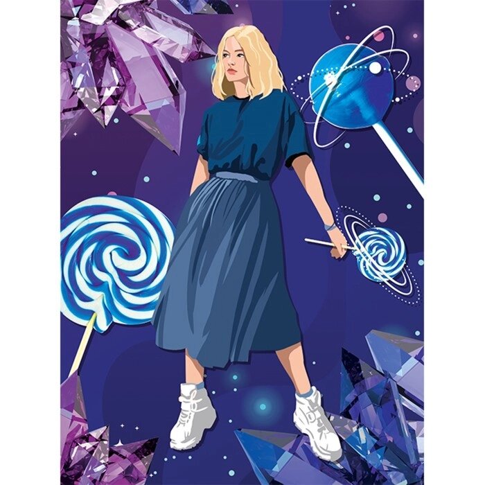 Алмазная мозаика с частичным заполнением «Космическая девушка» без рамы 30х40 см