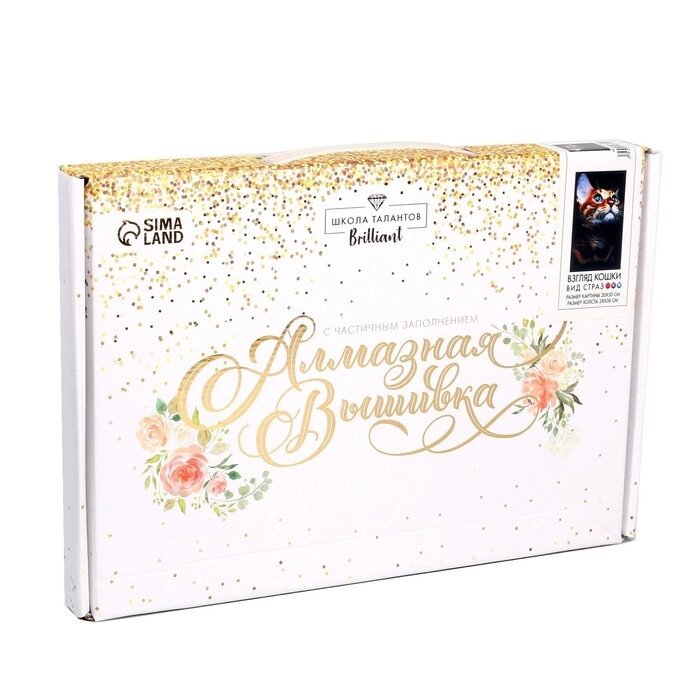 Алмазная мозаика с частичным заполнением «Взгляд кошки» 20х30 см, на холсте