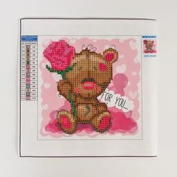 Алмазная мозаика с частичным заполнением «Мишка с розой» 2020 см, с рамкой на подставке