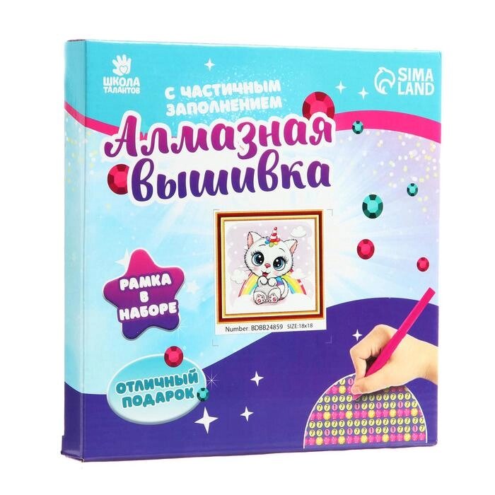Алмазная мозаика с частичным заполнением «Киска с рогом» 2020 см, с рамкой на подставке