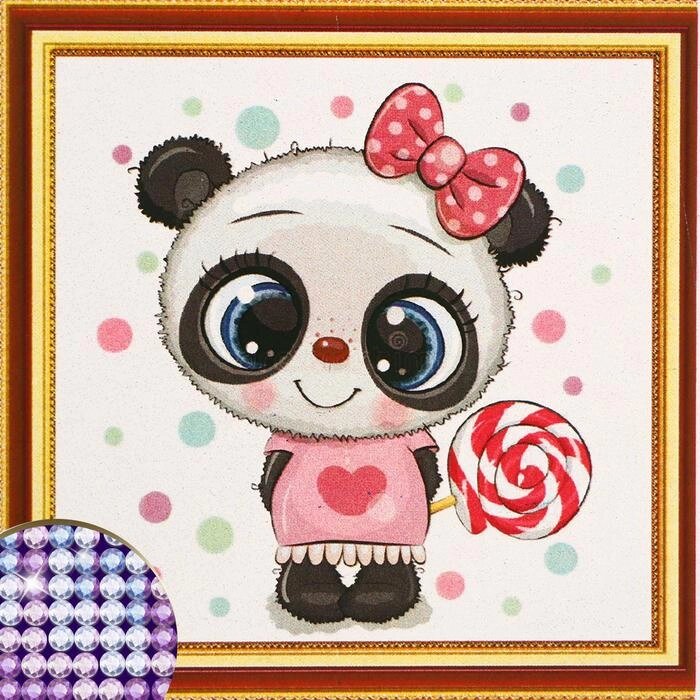 Алмазная мозаика с частичным заполнением «Панда» 2020 см, с рамкой на подставке
