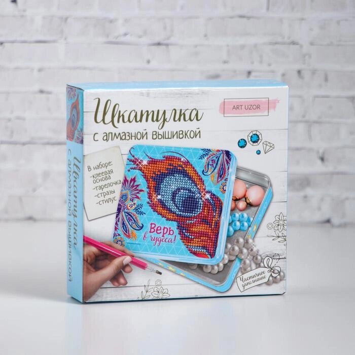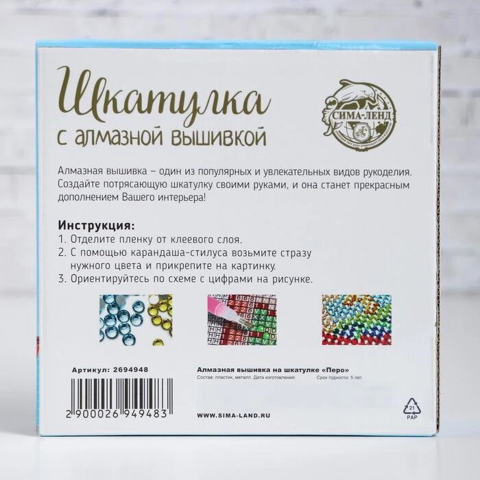 Алмазная мозаика на шкатулке «Перо», 14 х 14 см