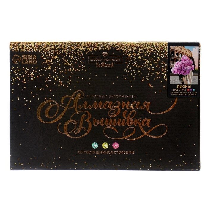 Алмазная мозаика с полным заполнением «Пионы» 20х30 см
