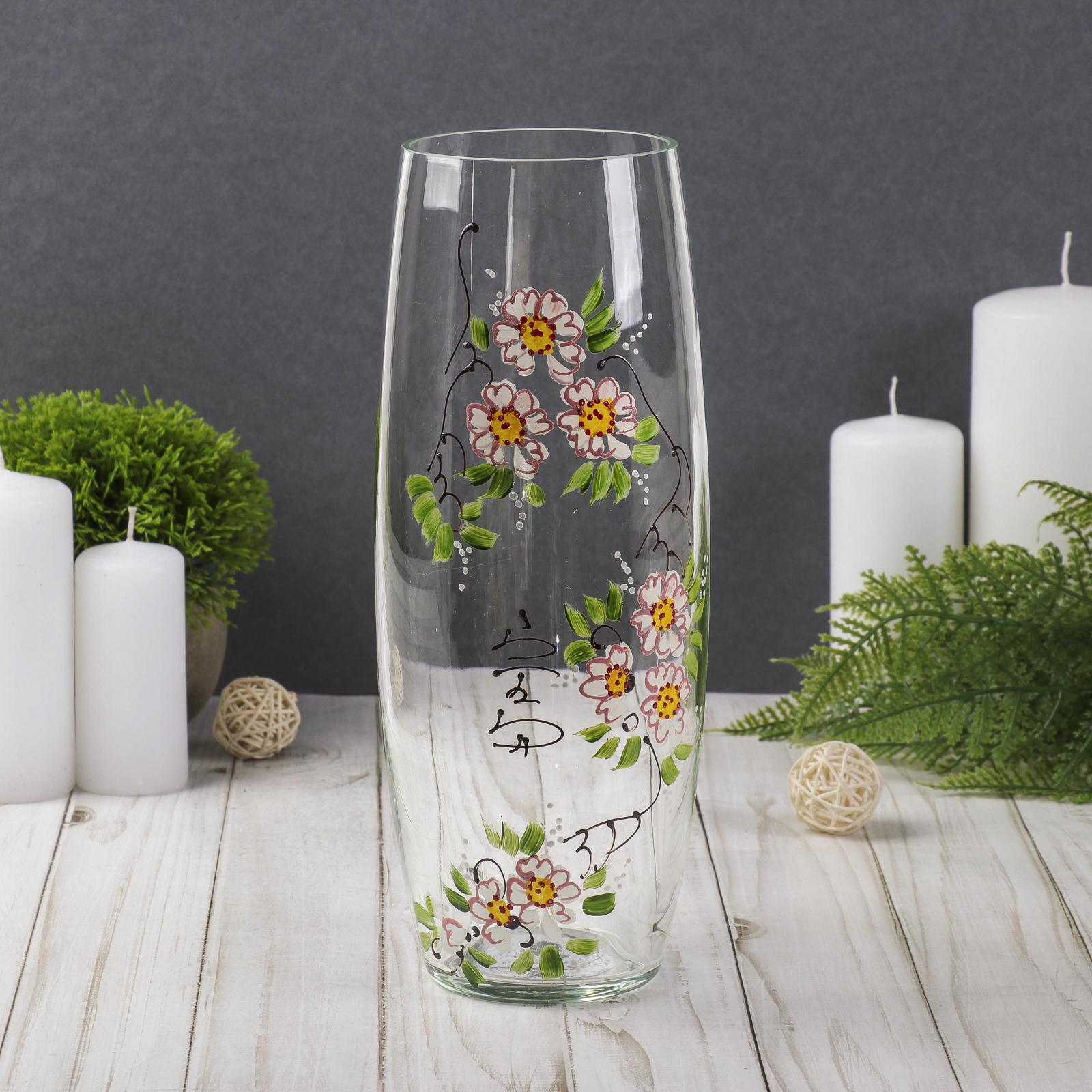 Ваза "Бочка" соцветие, прозрачная (ручная рукопись) 26см
