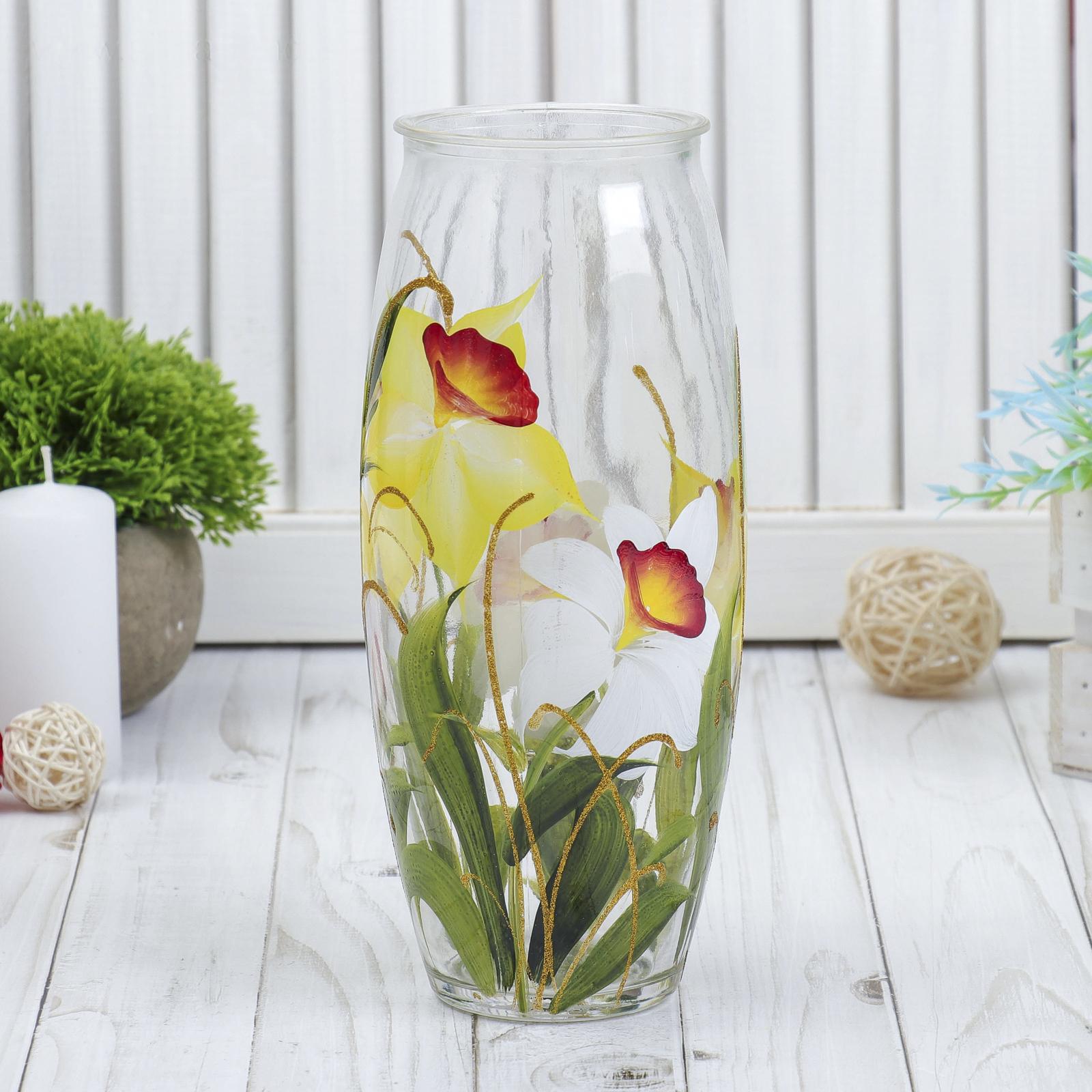 Ваза Нарцисс с росписью на проз.стекле, d-7см 10х23 см