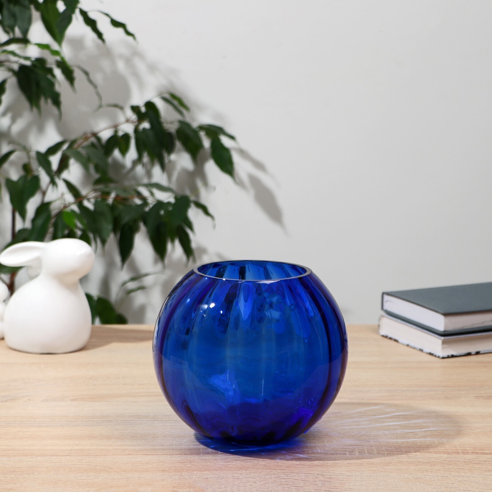 Ваза "Шар" риф. из синего стекла (без декора) h=16*18 см, d=10см