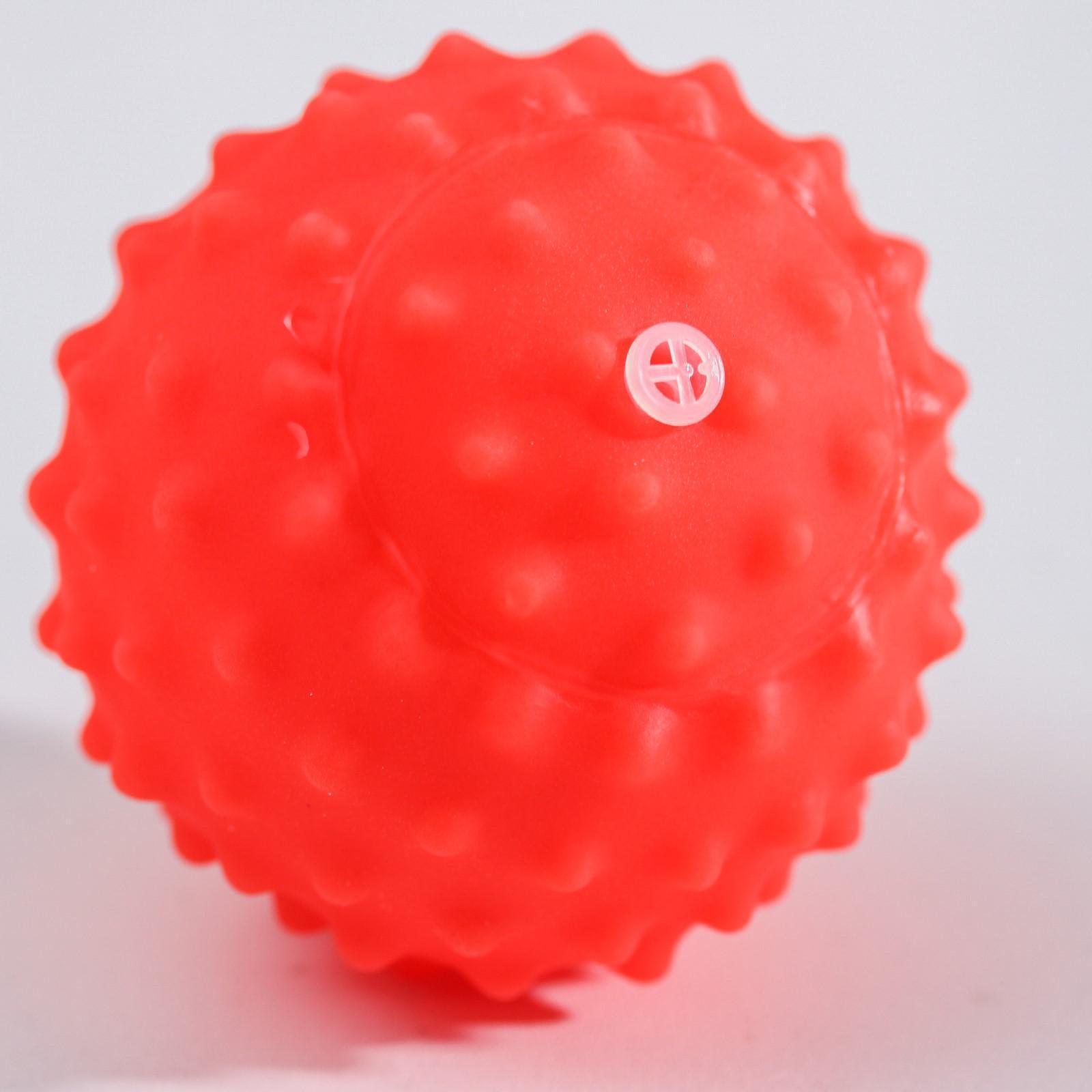 Мячики с рельефной массажной поверхностью способствуют развитию мелкой моторики и тактильных ощущений. Давление на фактурную поверхность мячиков стимулирует и благоприятно воздействует на нервные окончания, ответственные за большинство процессов в организме. Шарики имеют яркие цвета, которые способствуют развитию зрения, а пищалка внутри развивает слуховое восприятие.