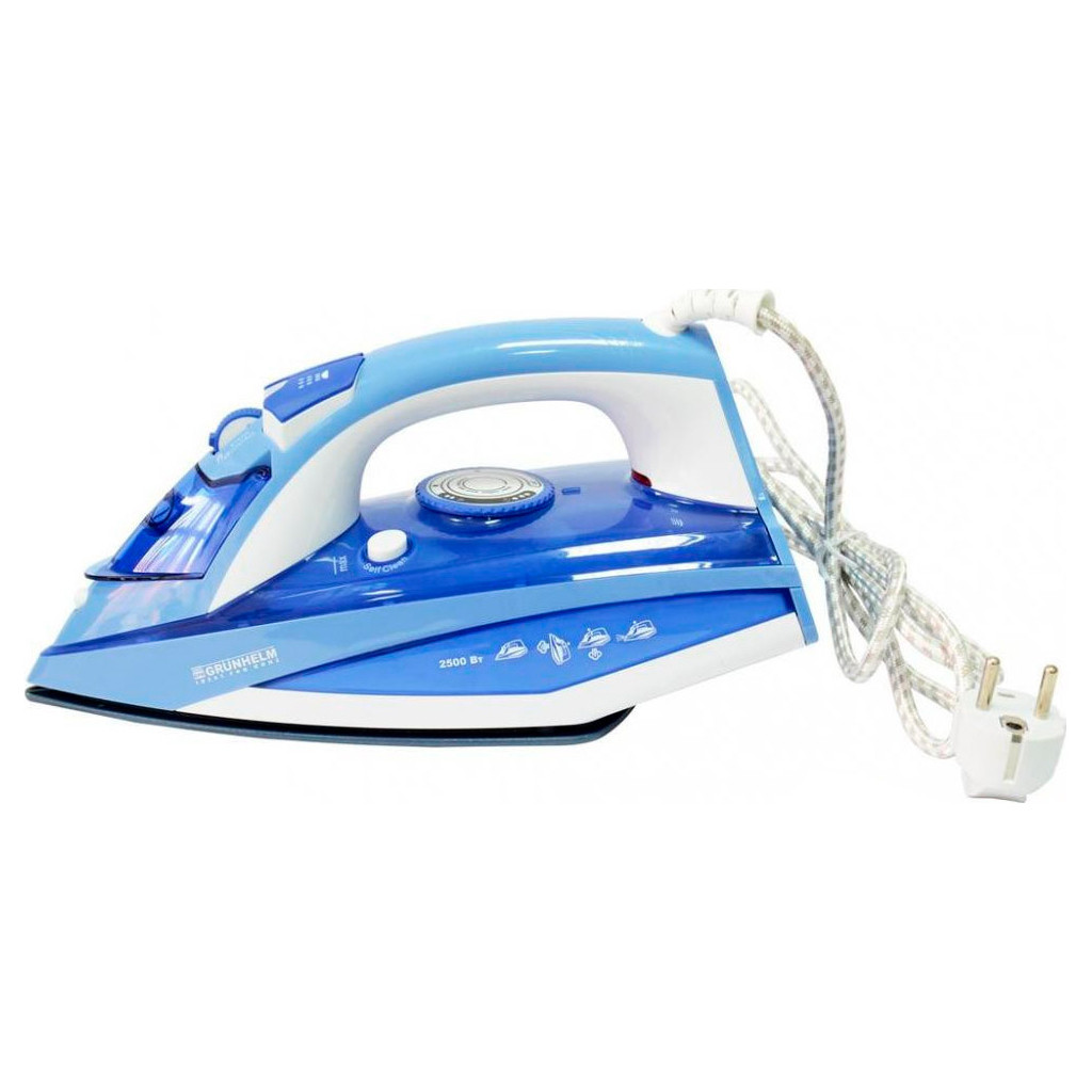 Grunhelm EI8890 - сучасна парова праска, перетворить виснажливий процес прасування на приємне заняття. Потужністю 2500 Вт, говорить про те, що Ви з легкістю зможете справлятися з різними типами тканин, включаючи важку постільну білизну та покривала.