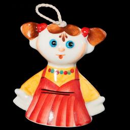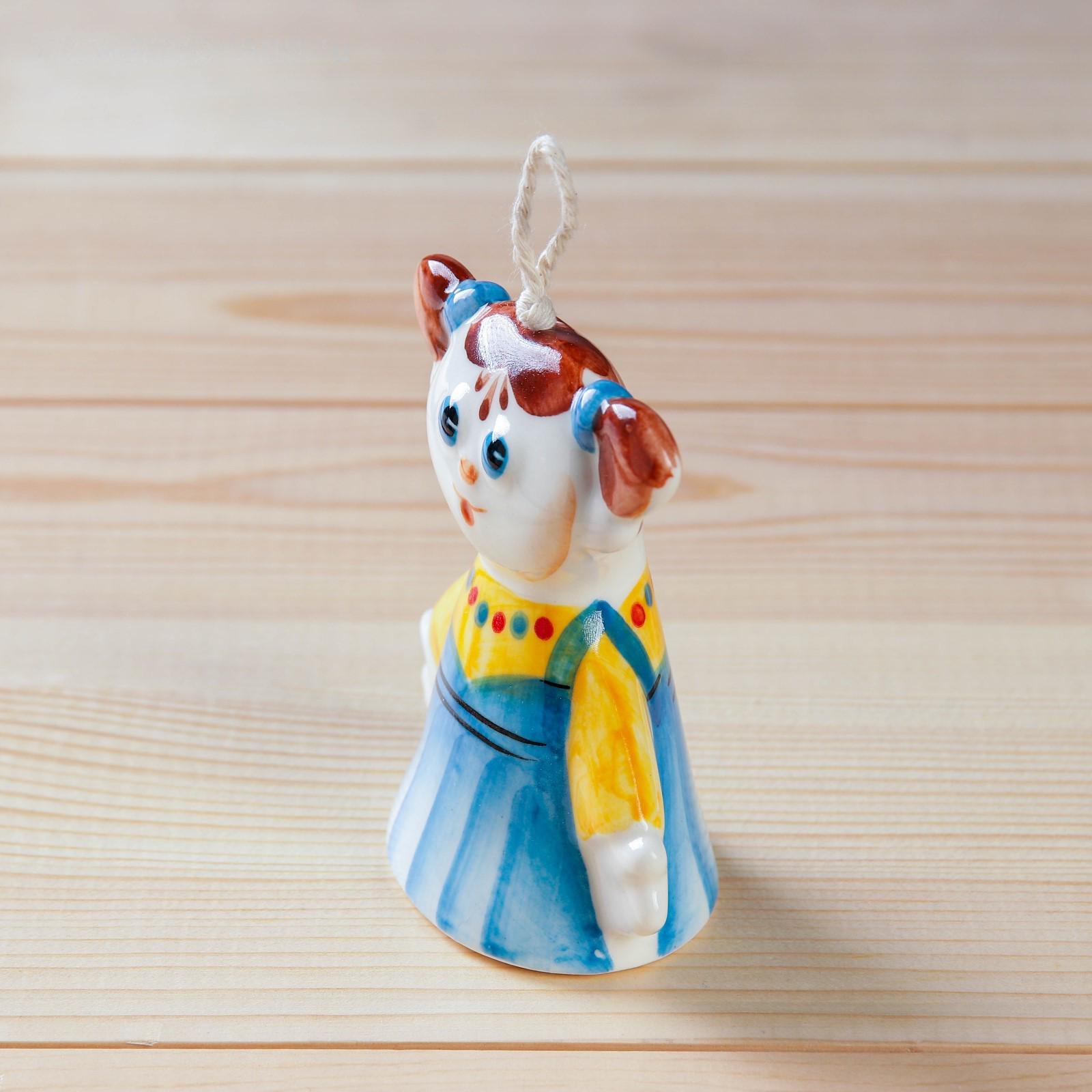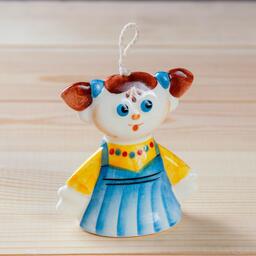 Колокольчик фарфоровый "Девочка", авторская роспись, 9 см