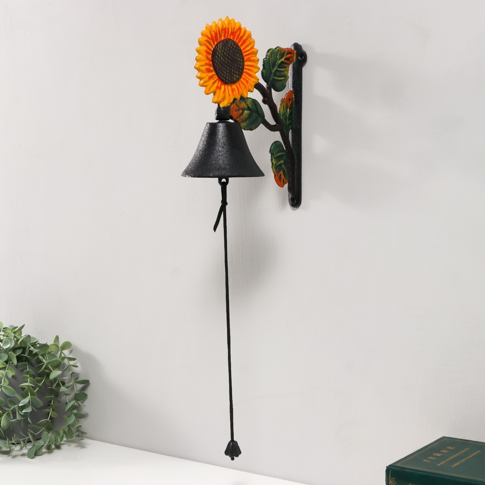 Колокол сувенирный чугун "Подсолнух" цветной 18х10х24 см