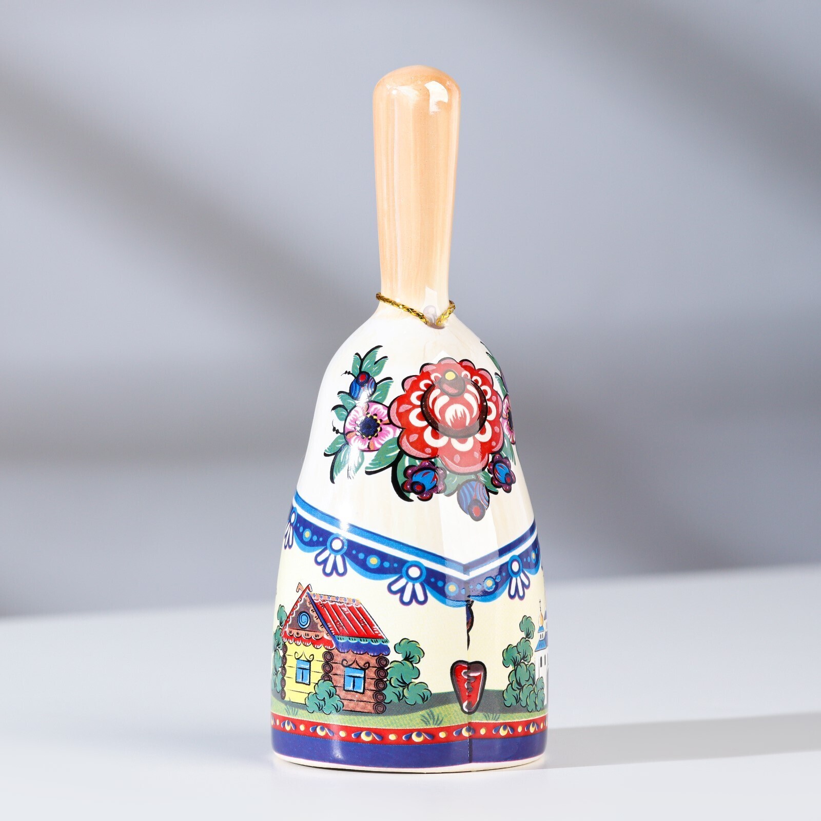 Колокольчик с ручкой "Матрешка" средняя, керамика, микс