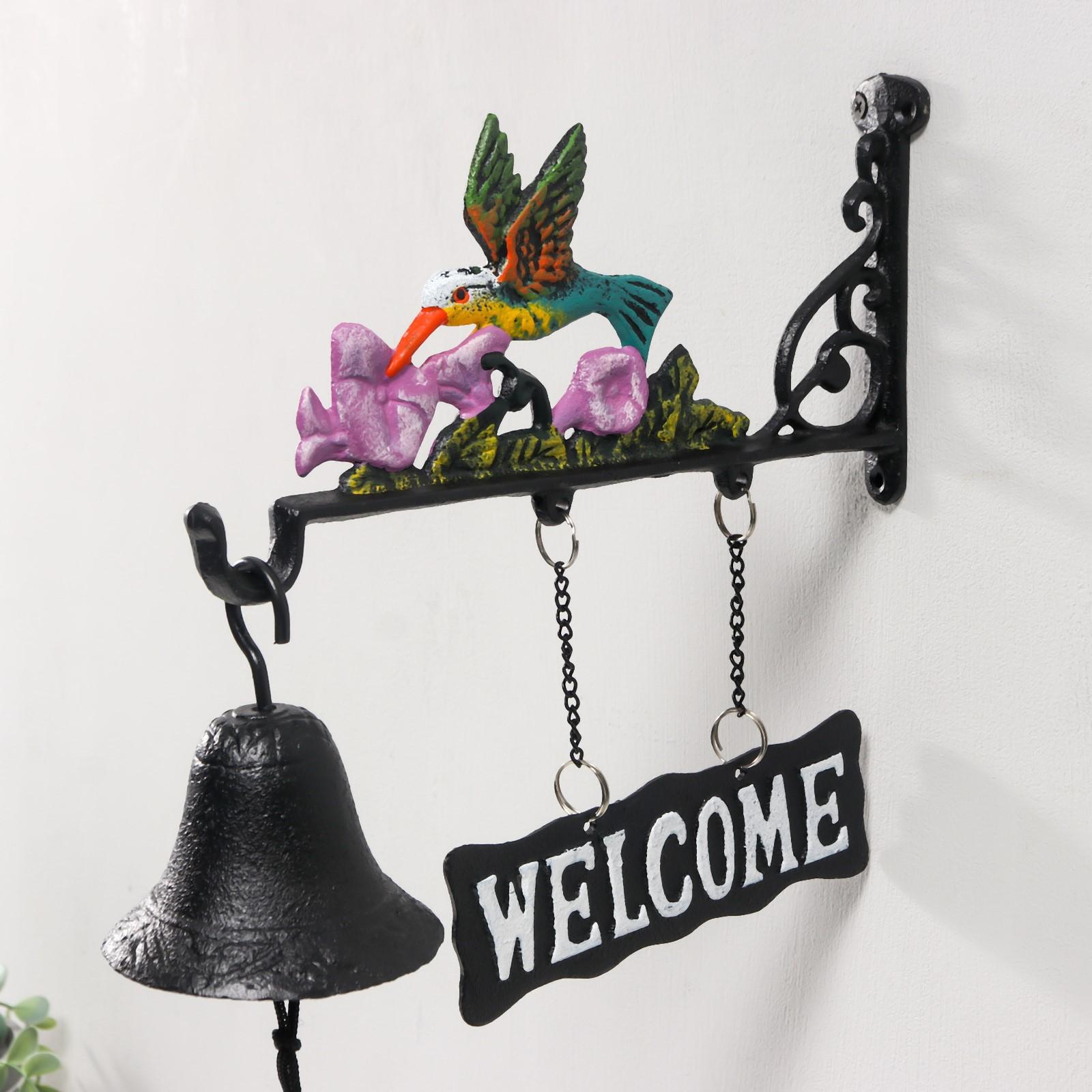 Колокол сувенирный чугун "Колибри" цветной 28х9,7х31 см