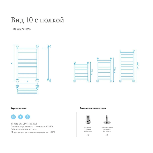 Полотенцесушитель Маргроид Вид 10 с полкой, нижнее подключение, форма - лесенка.